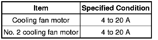 (b) Clamp the 400 A probe of an ammeter over the M+ wire of each cooling fan motor.