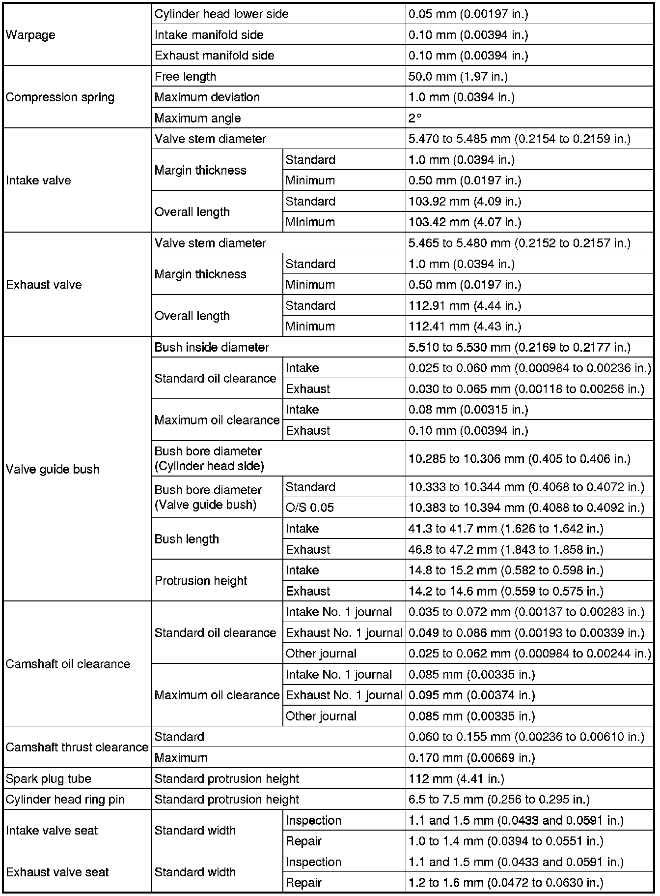SPECIFICATIONS: 1AR-FE ENGINE MECHANICAL: SERVICE DATA