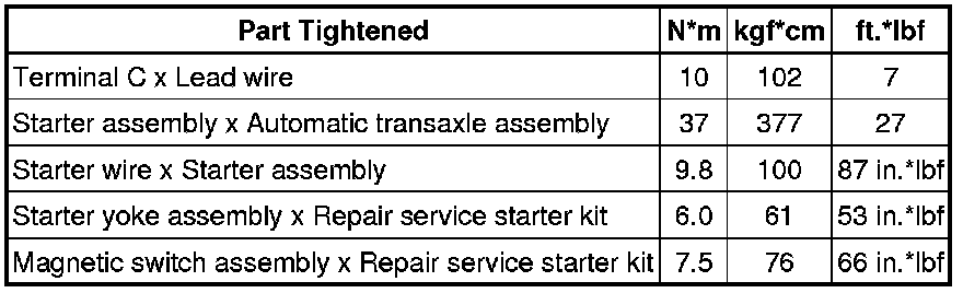 SPECIFICATIONS: 1AR-FE STARTING: TORQUE SPECIFICATIONS