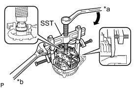 (d) Loosen the pulley by turning SST2 in the direction shown in the illustration.