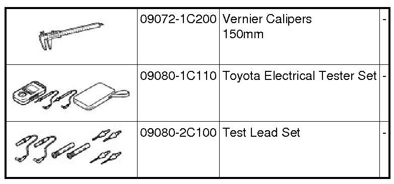 PREPARATION: 1AR-FE BATTERY / CHARGING: RECOMMENDED TOOLS