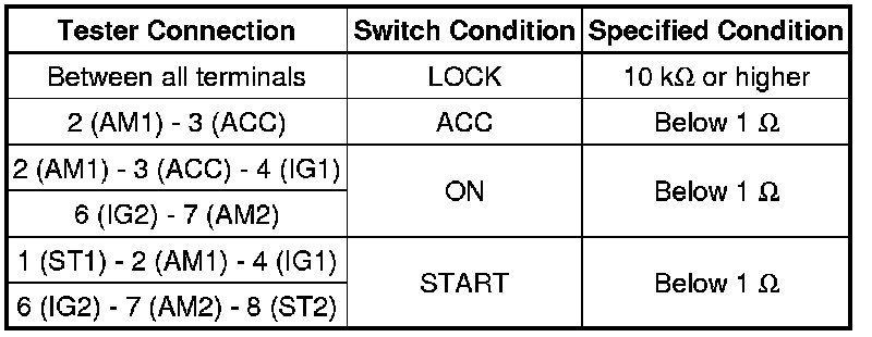 1AR-FE STARTING: IGNITION SWITCH: INSPECTION