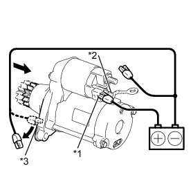 (4) Check that the starter rotates smoothly and steadily with the pinion gear extended.