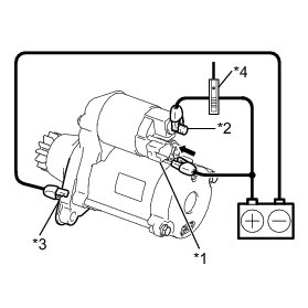 (3) Connect the battery and an ammeter to the starter as shown in the illustration.