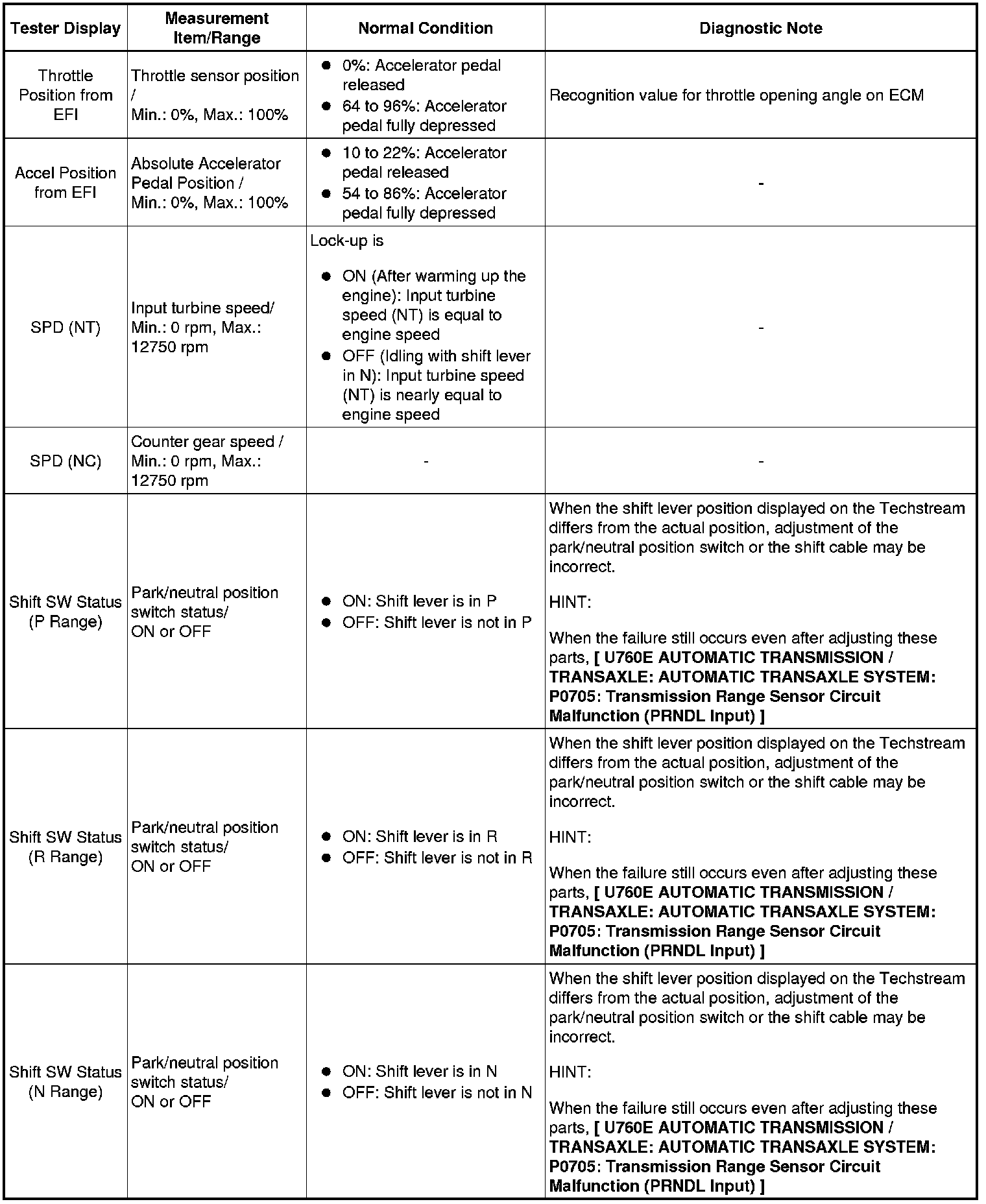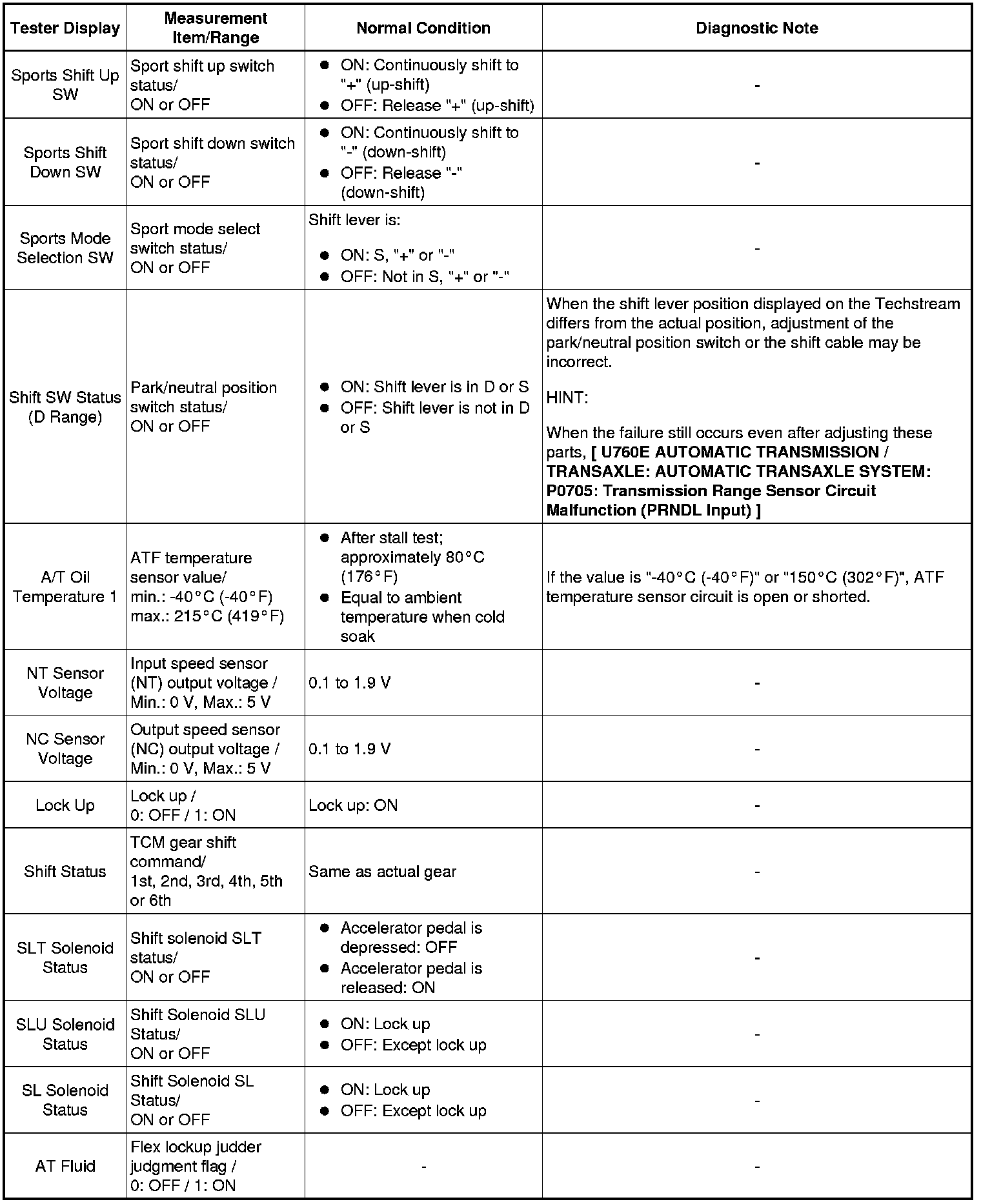 U760E AUTOMATIC TRANSMISSION / TRANSAXLE: AUTOMATIC TRANSAXLE SYSTEM: DATA LIST / ACTIVE TEST