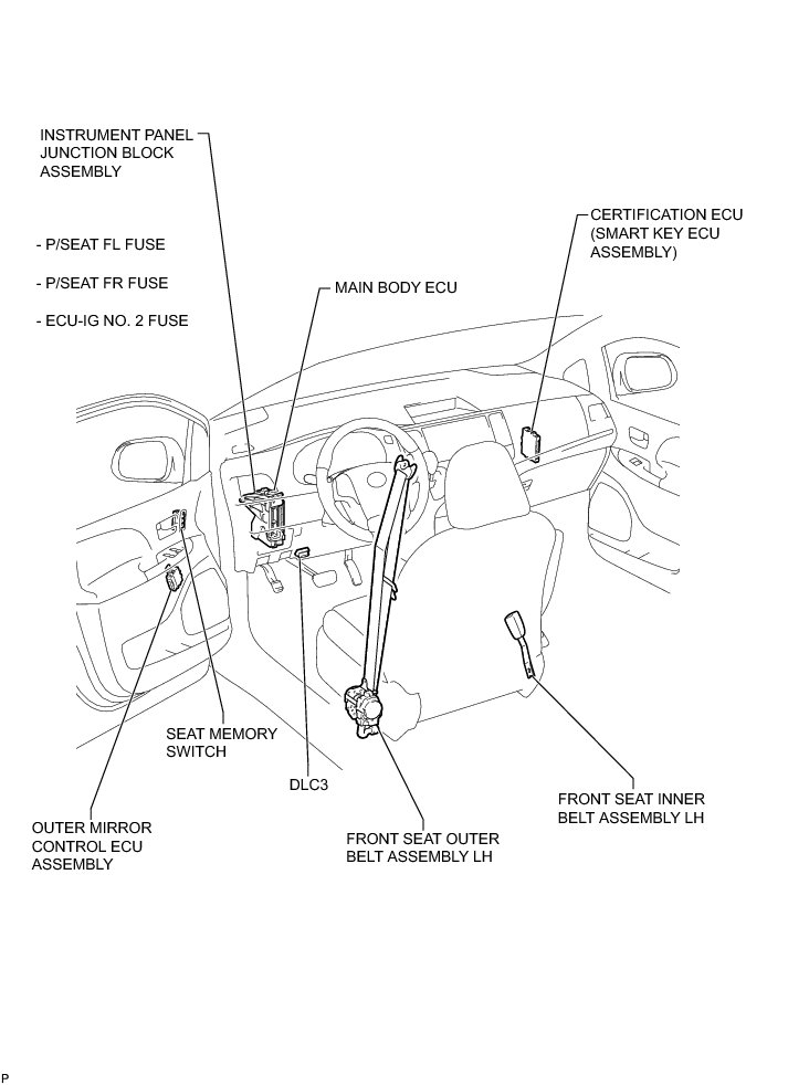 SEAT: FRONT POWER SEAT CONTROL SYSTEM (w/ Memory): PARTS LOCATION