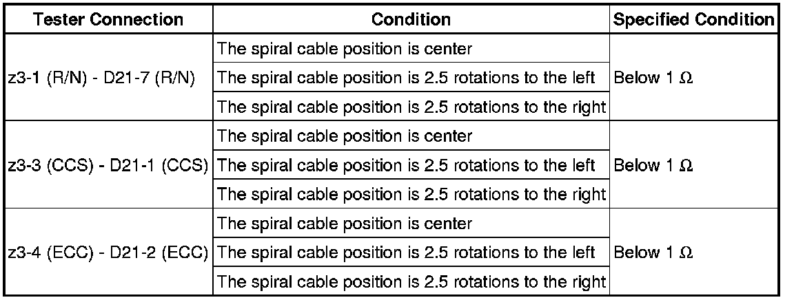 3. CHECK HARNESS AND CONNECTOR (SPIRAL CABLE - CRUISE CONTROL MAIN SWITCH)