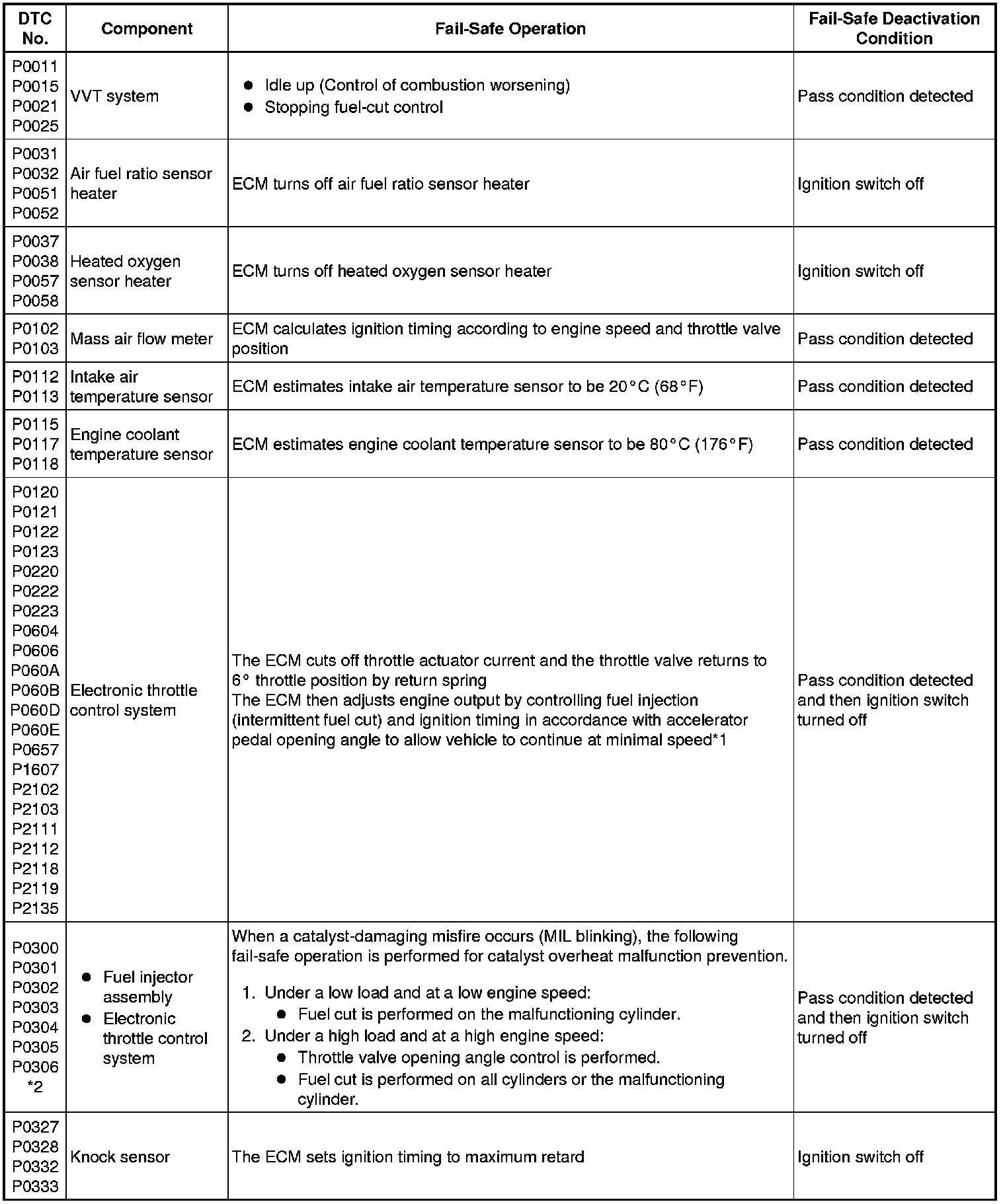 * *2: Misfire related fail-safe operations occur when catalyst overheat malfunctions occur.