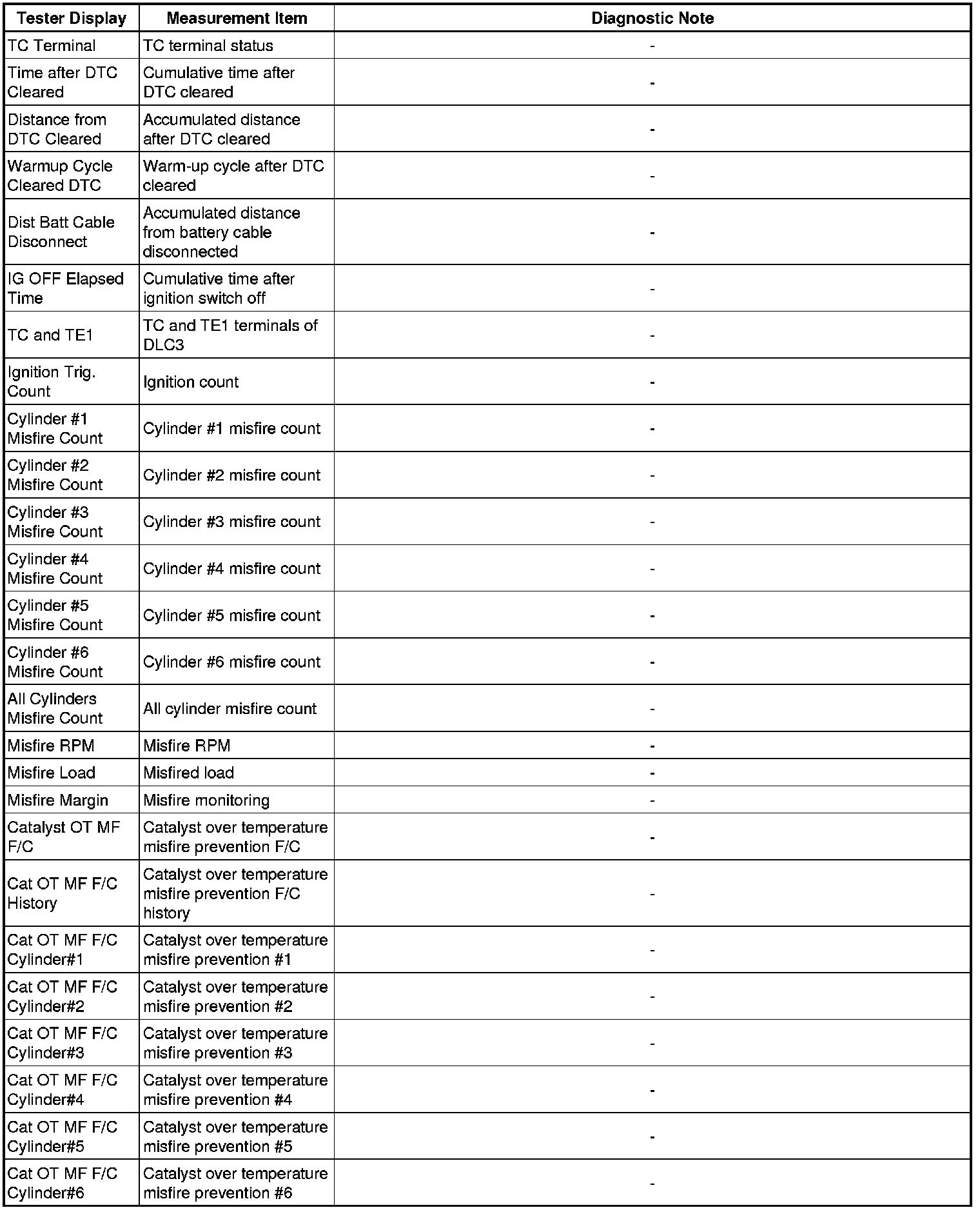 2. LIST OF FREEZE FRAME DATA