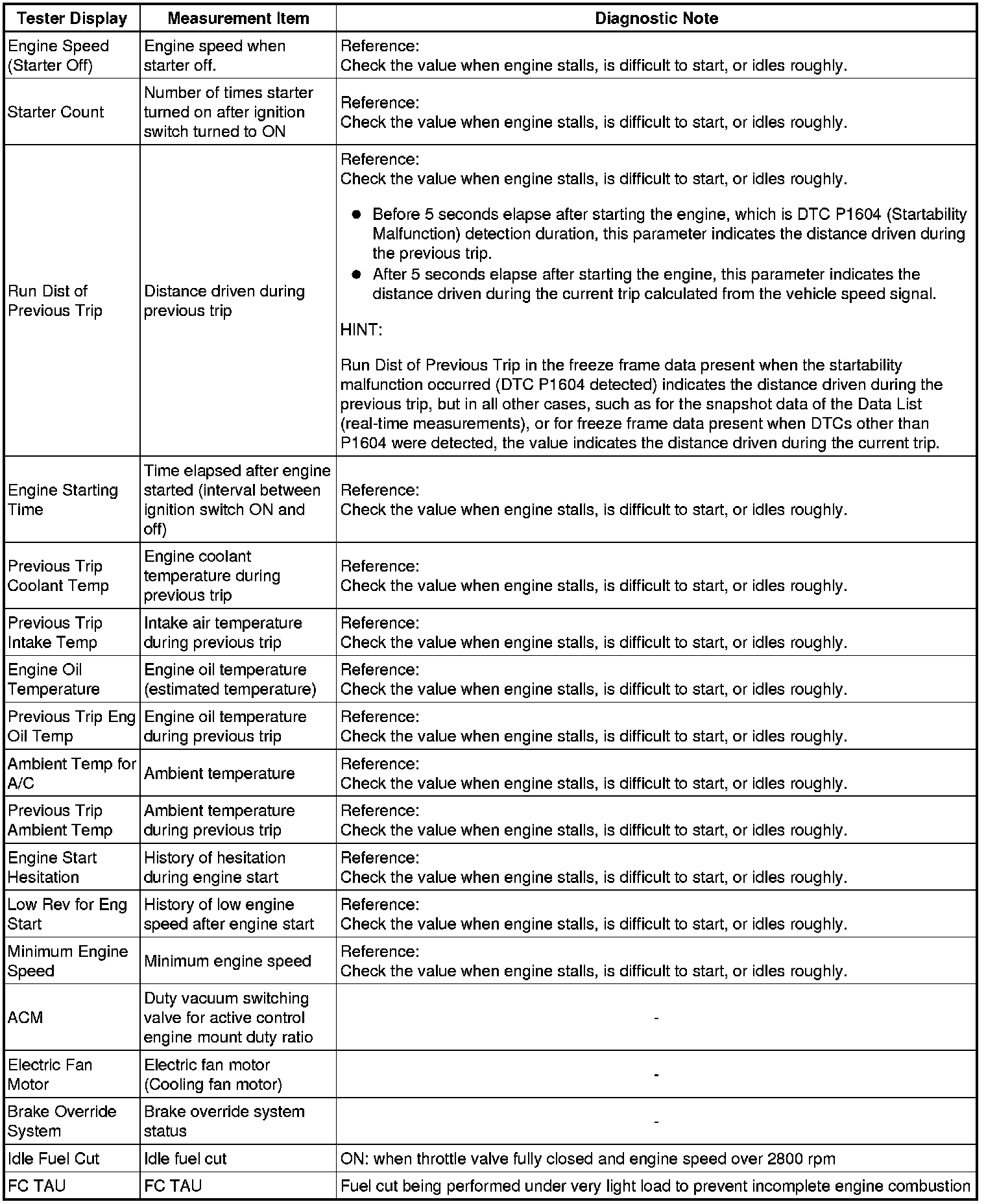 * These data sets can be used to simulate the condition of the vehicle around the time of the occurrence of the malfunction. The data may assist in identifying the cause of the malfunction, and judging whether it was temporary or not.
