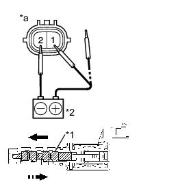 (1) Connect a battery positive (+) lead to terminal 1 and negative (-) lead to terminal 2, and check the movement of the spool valve.