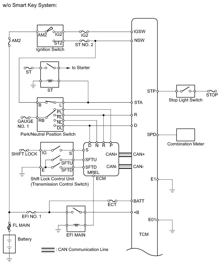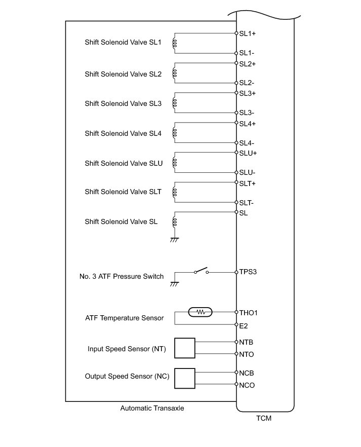 The configuration of the electronic control system in the U660E automatic transaxle is as shown in the following chart.
