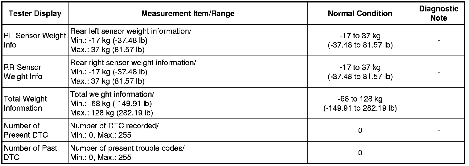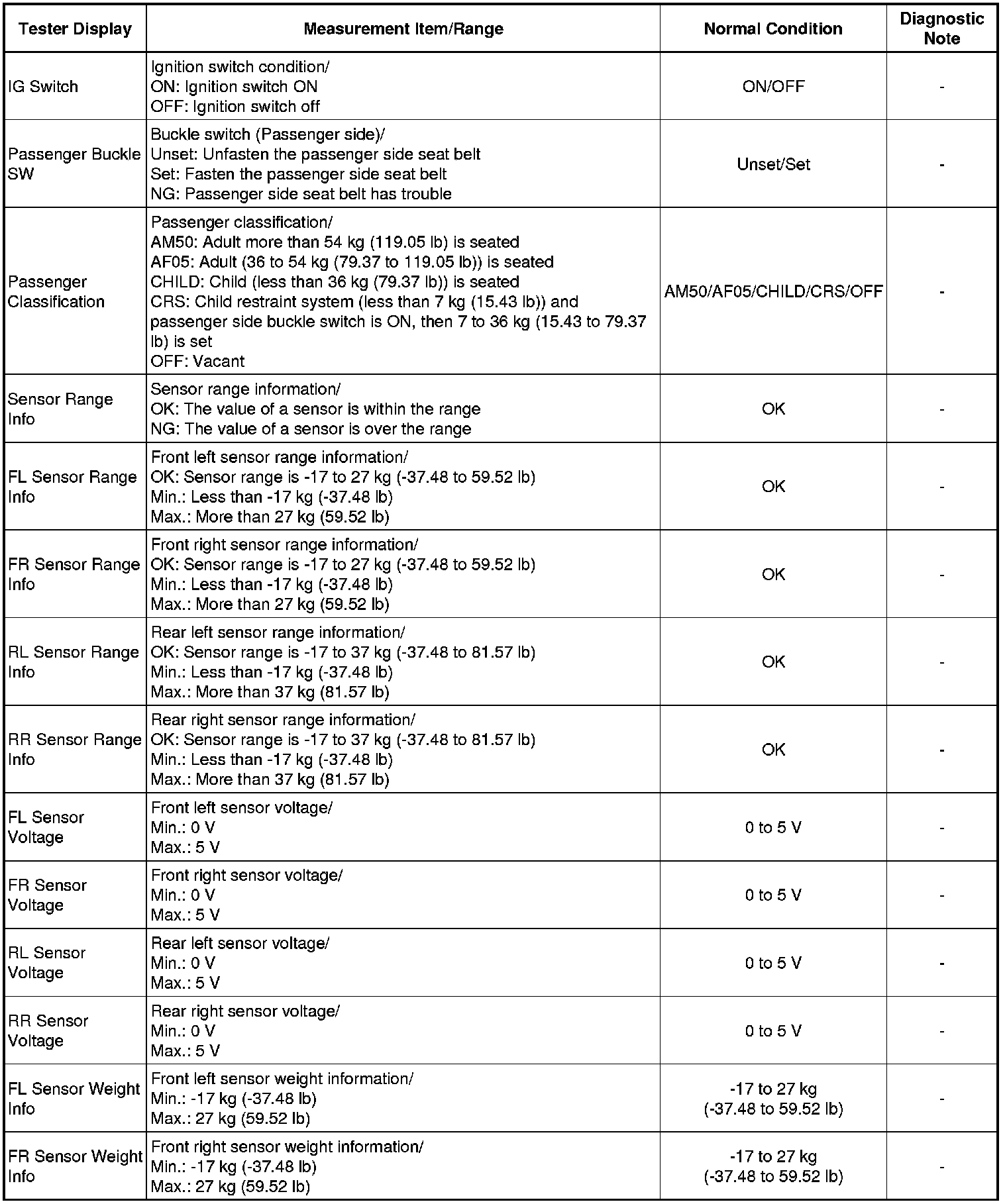 SUPPLEMENTAL RESTRAINT SYSTEMS: OCCUPANT CLASSIFICATION SYSTEM: DATA LIST / ACTIVE TEST