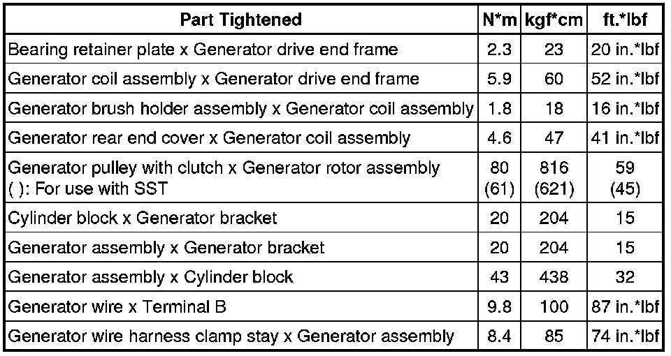 SPECIFICATIONS: 2GR-FE BATTERY / CHARGING: TORQUE SPECIFICATIONS
