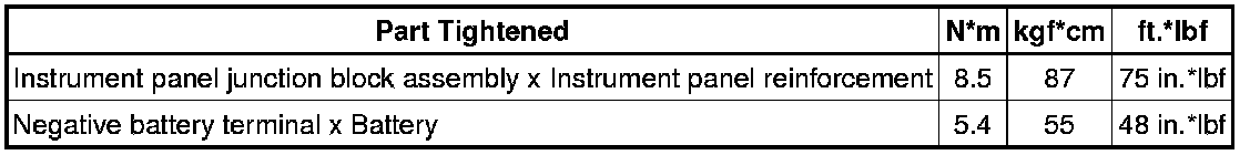 SPECIFICATIONS: POWER DISTRIBUTION: TORQUE SPECIFICATIONS