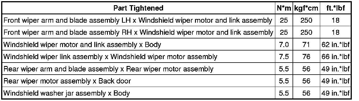 SPECIFICATIONS: WIPER / WASHER: TORQUE SPECIFICATIONS