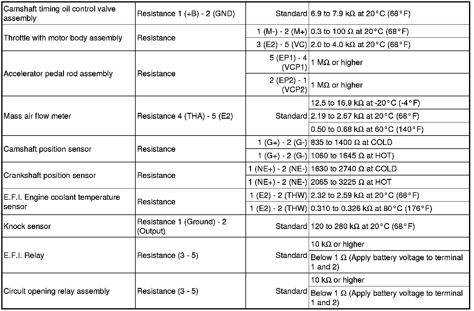 SERVICE SPECIFICATIONS: 2TR-FE ENGINE CONTROL SYSTEM: SERVICE DATA