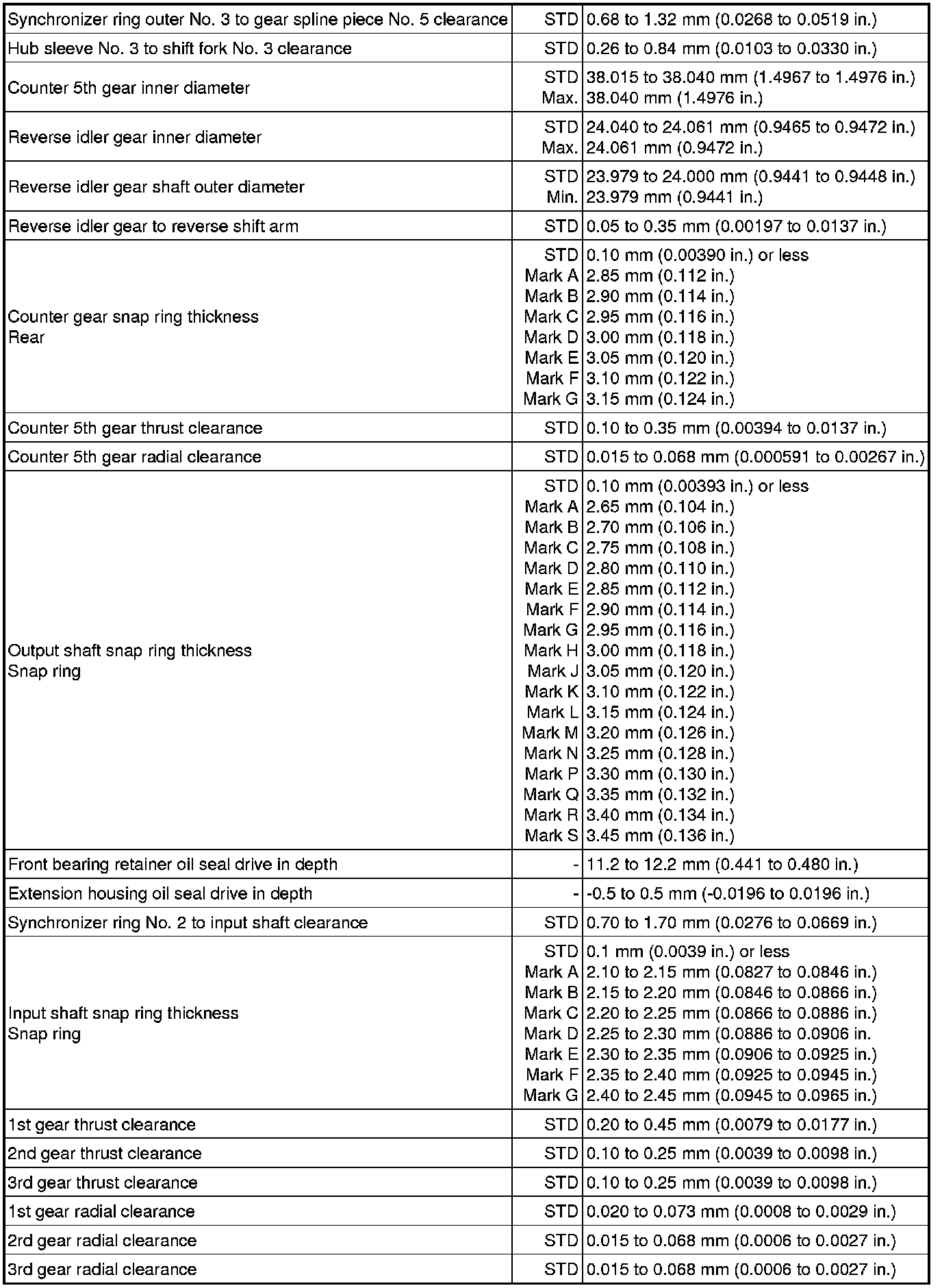 SERVICE SPECIFICATIONS: R155 MANUAL TRANSMISSION: SERVICE DATA