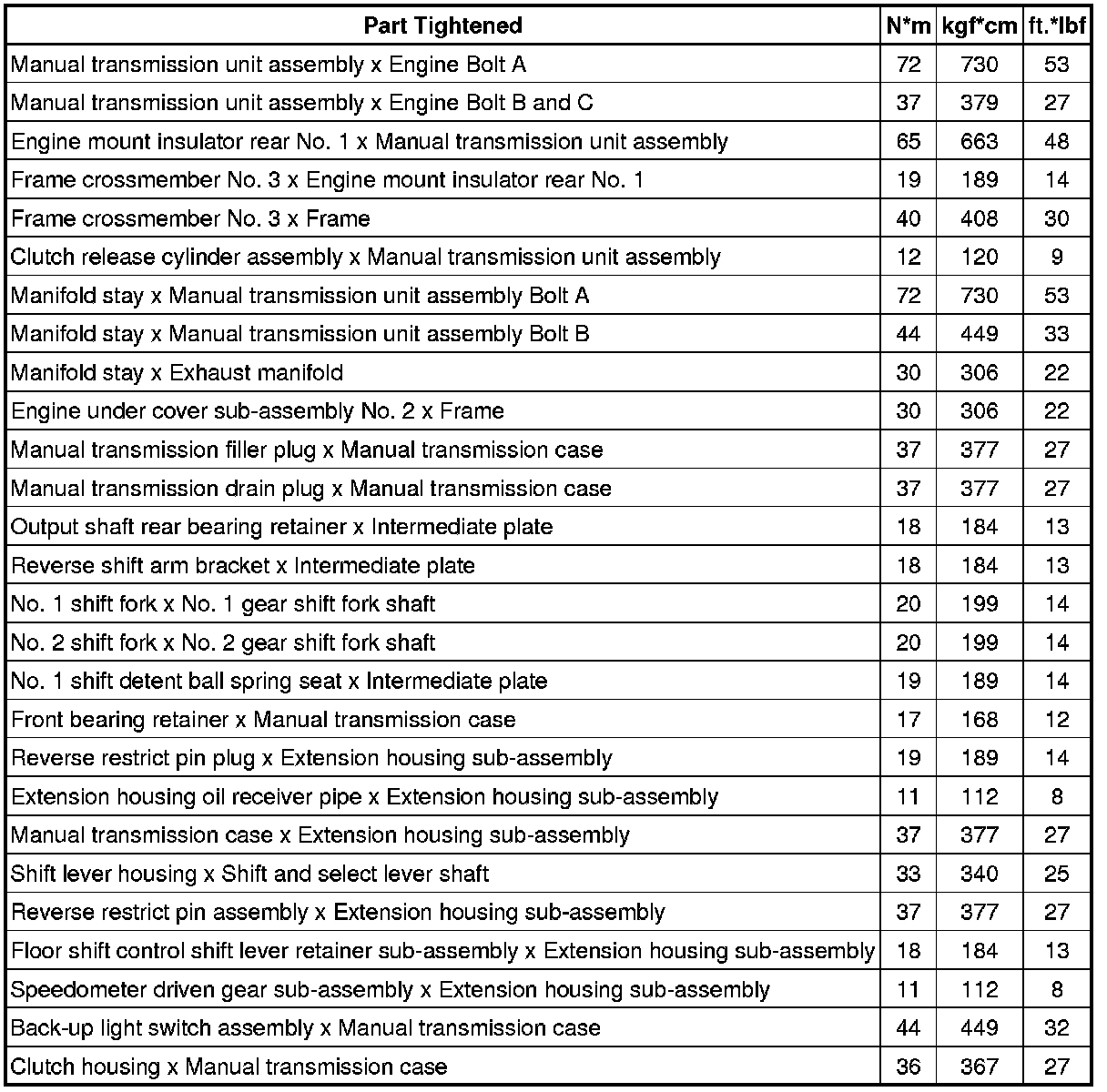 SERVICE SPECIFICATIONS: R155 MANUAL TRANSMISSION: TORQUE SPECIFICATIONS