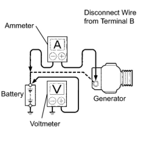 (1) Disconnect the wire from terminal B of the generator, then connect it to the negative (-) lead of the ammeter.