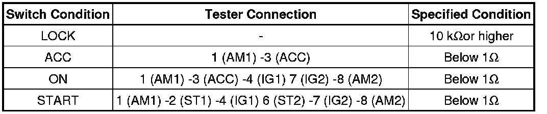 2TR-FE STARTING: IGNITION SWITCH: INSPECTION
