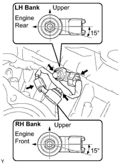 (a) Install the 2 knock sensors with the 2 bolts as shown in the illustration.