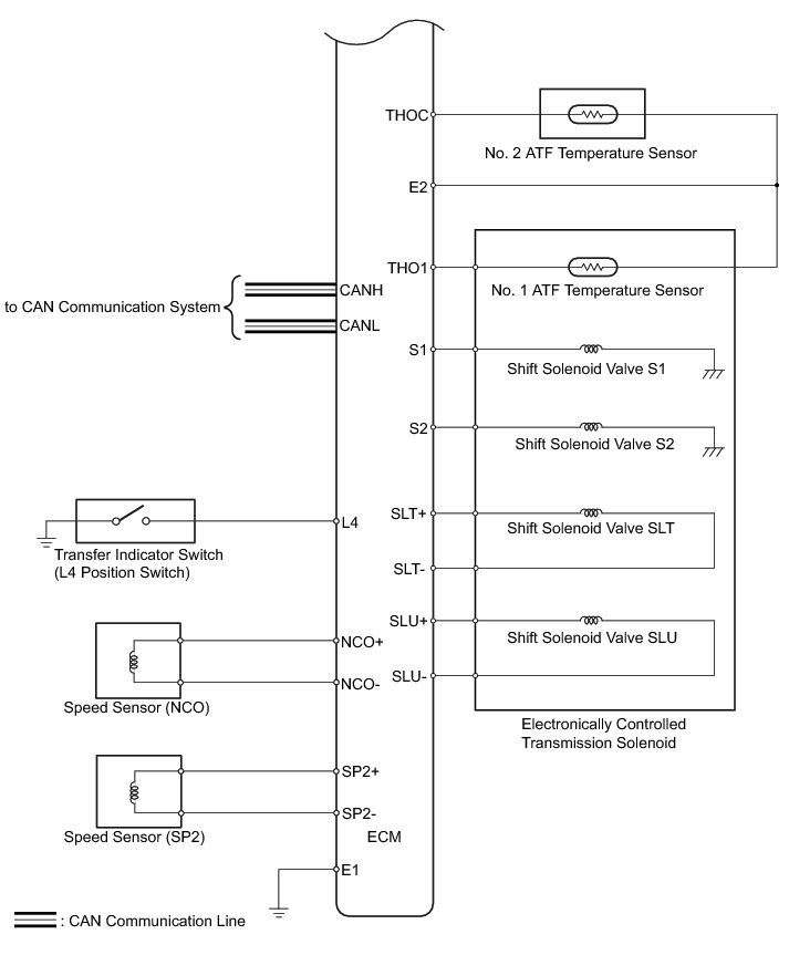 The configuration of the electronic control system for the A340F automatic transmission is as shown in the following chart.