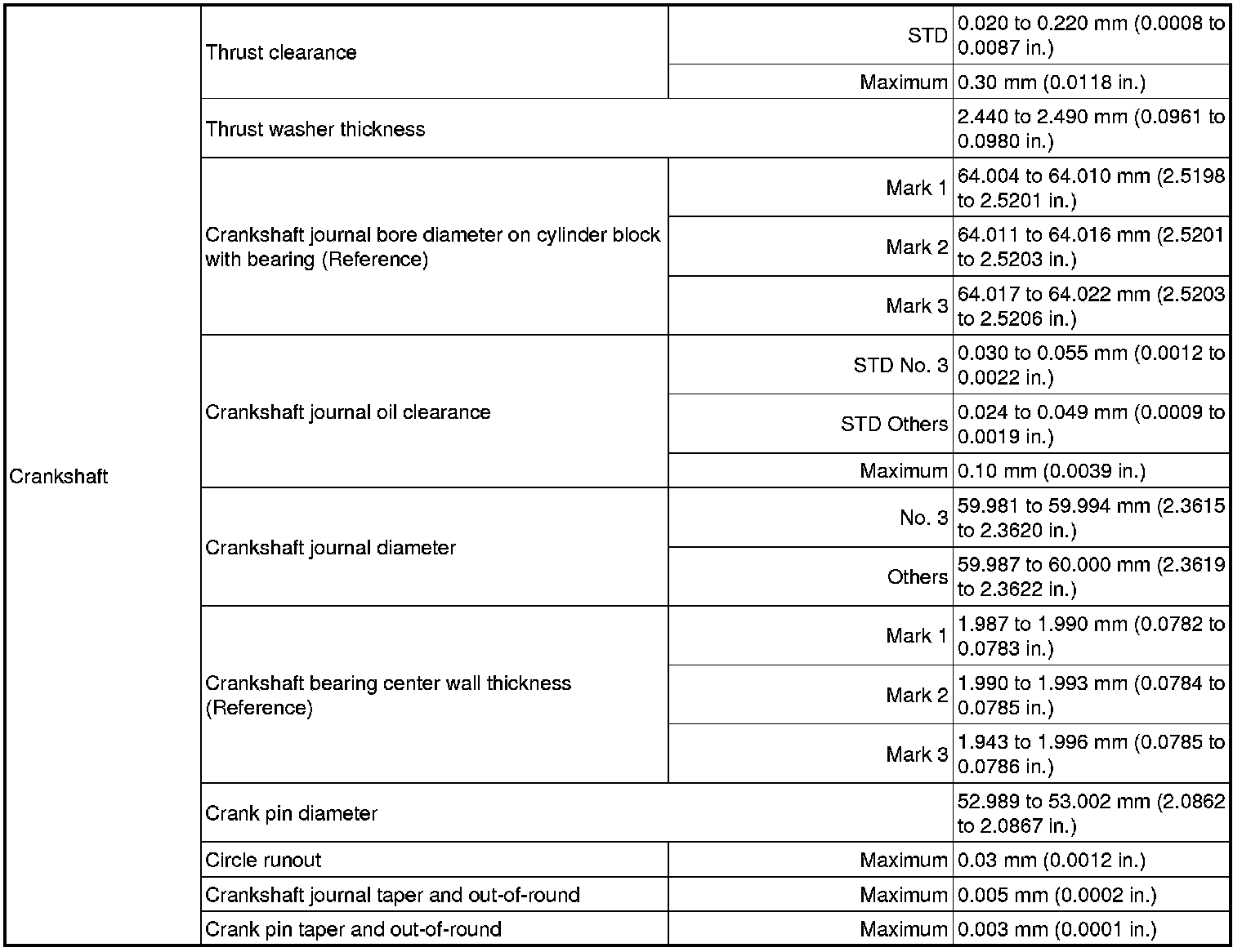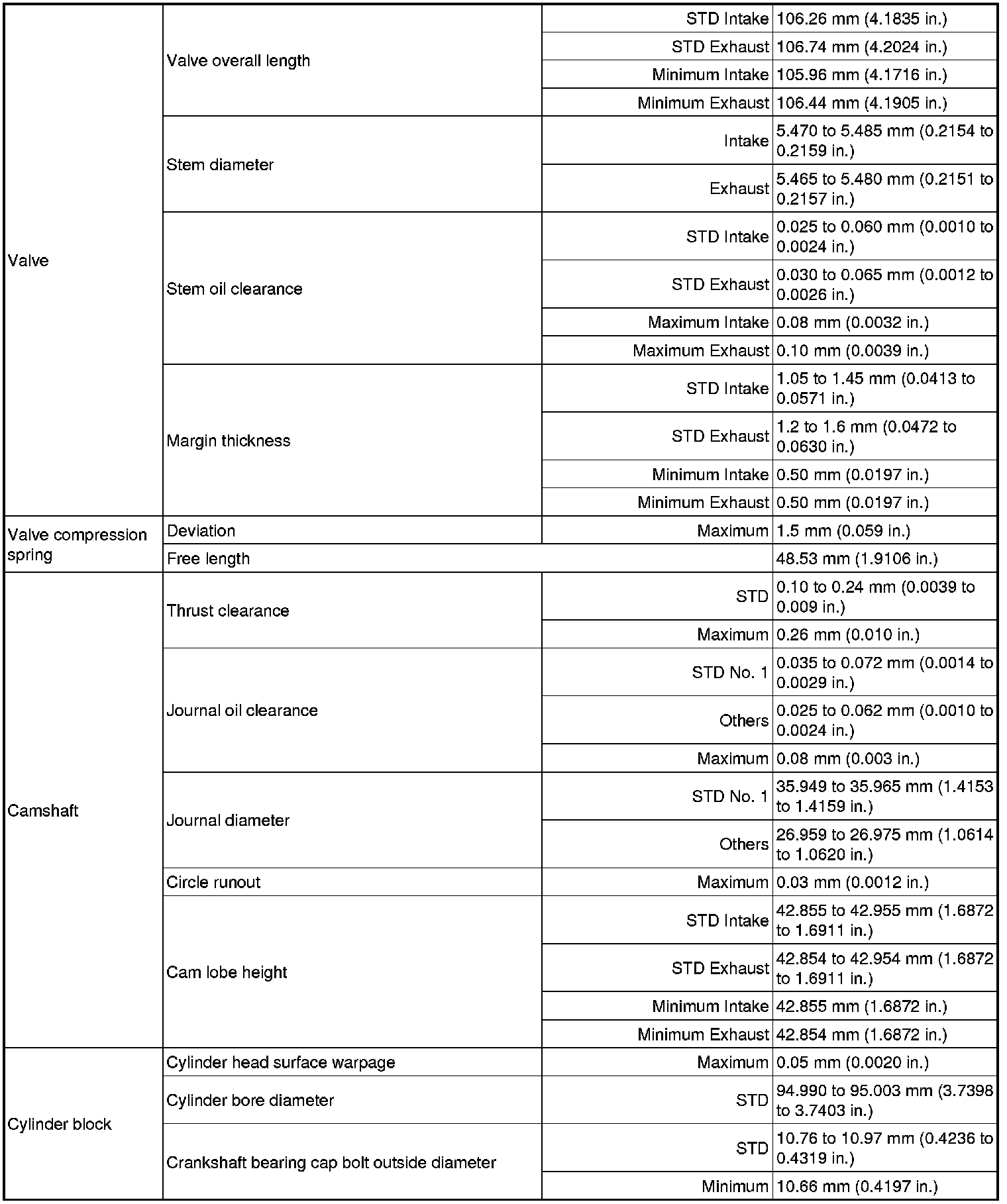 SERVICE SPECIFICATIONS: 2TR-FE ENGINE MECHANICAL: SERVICE DATA