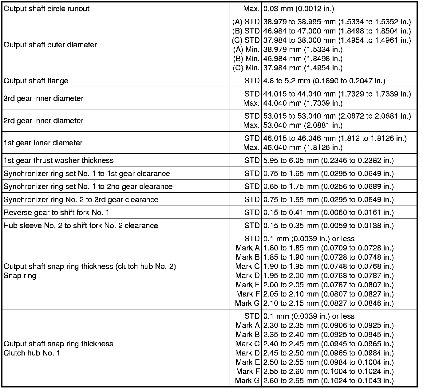 SERVICE SPECIFICATIONS: R155F MANUAL TRANSMISSION: SERVICE DATA