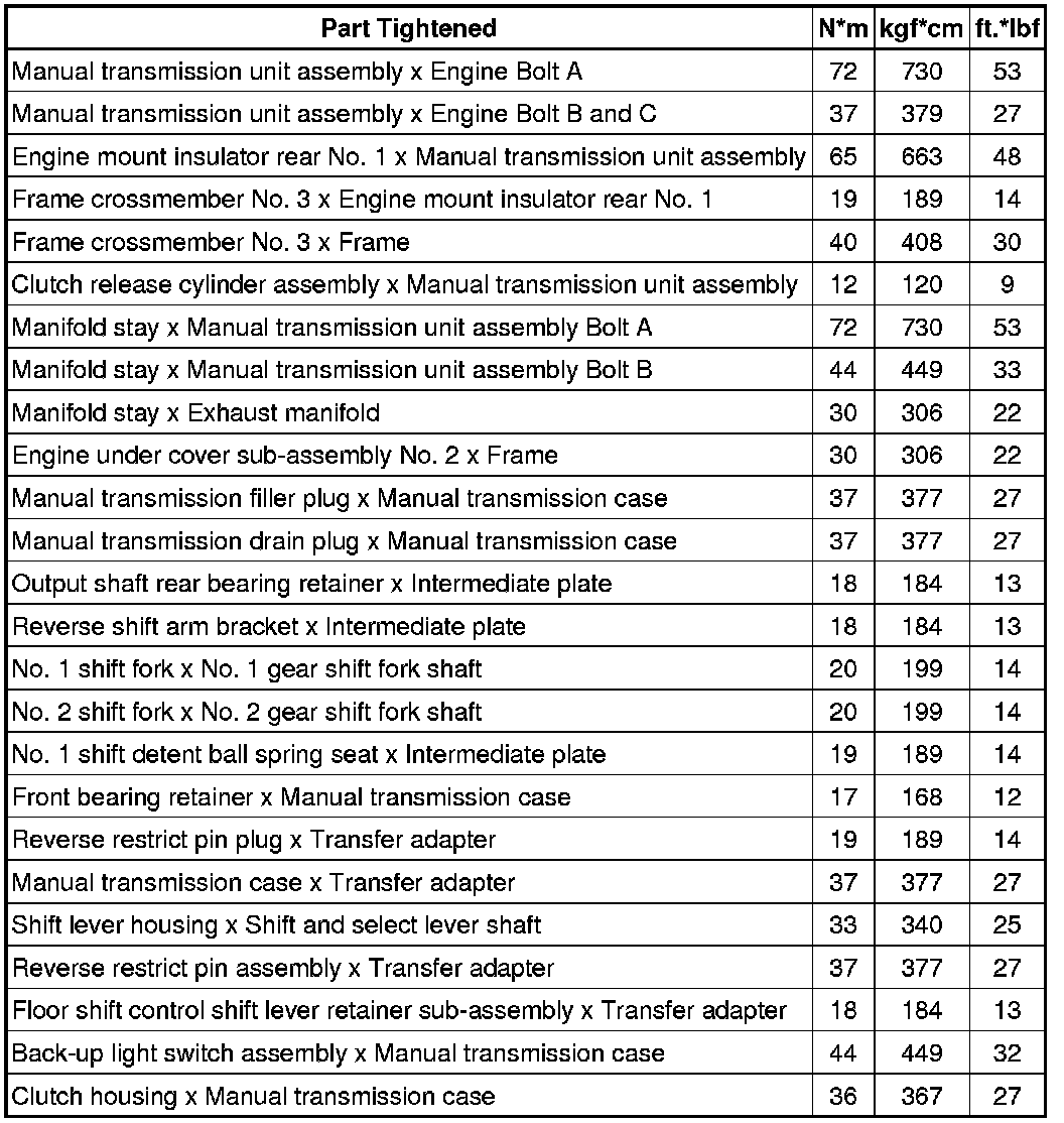 SERVICE SPECIFICATIONS: R155F MANUAL TRANSMISSION: TORQUE SPECIFICATIONS