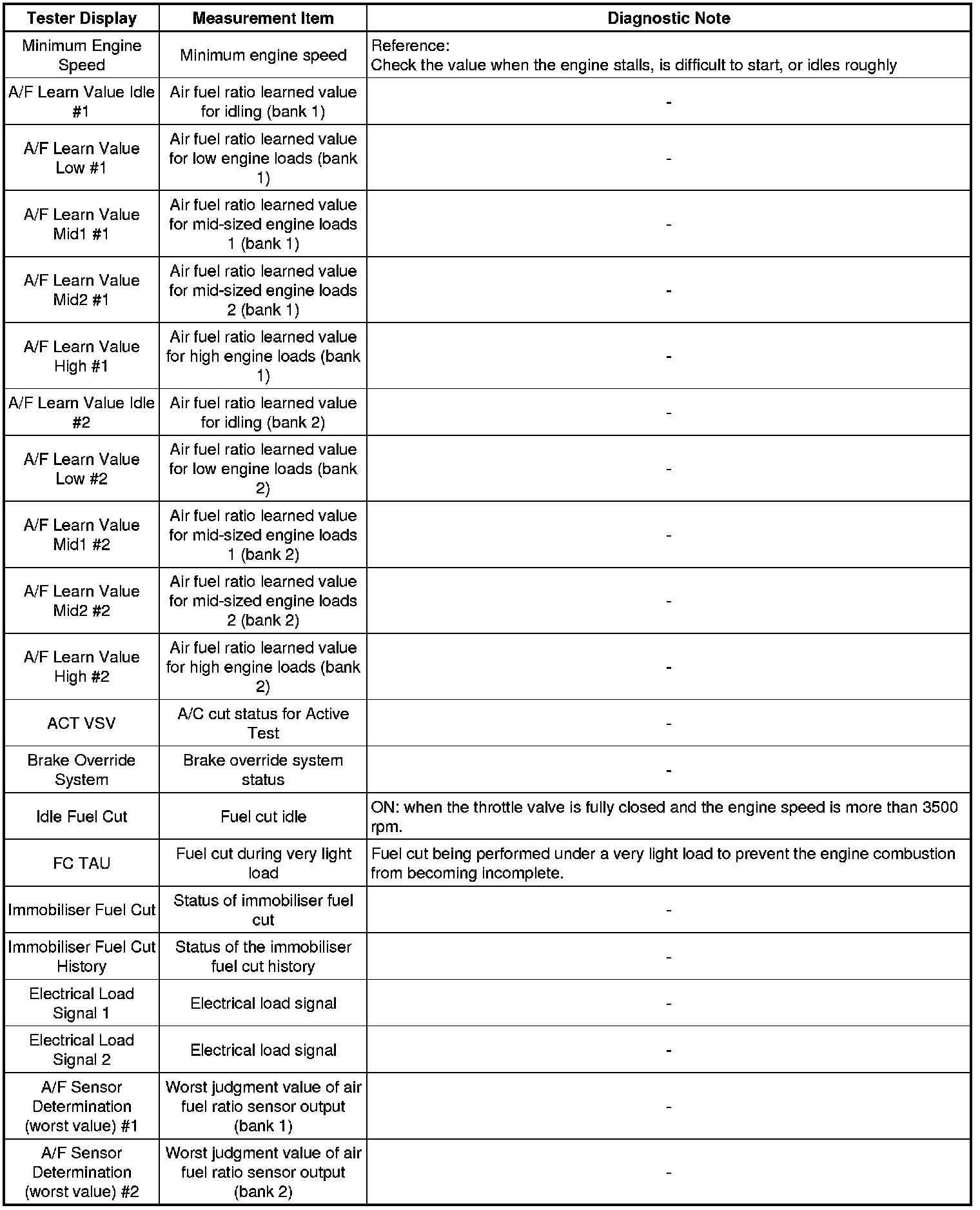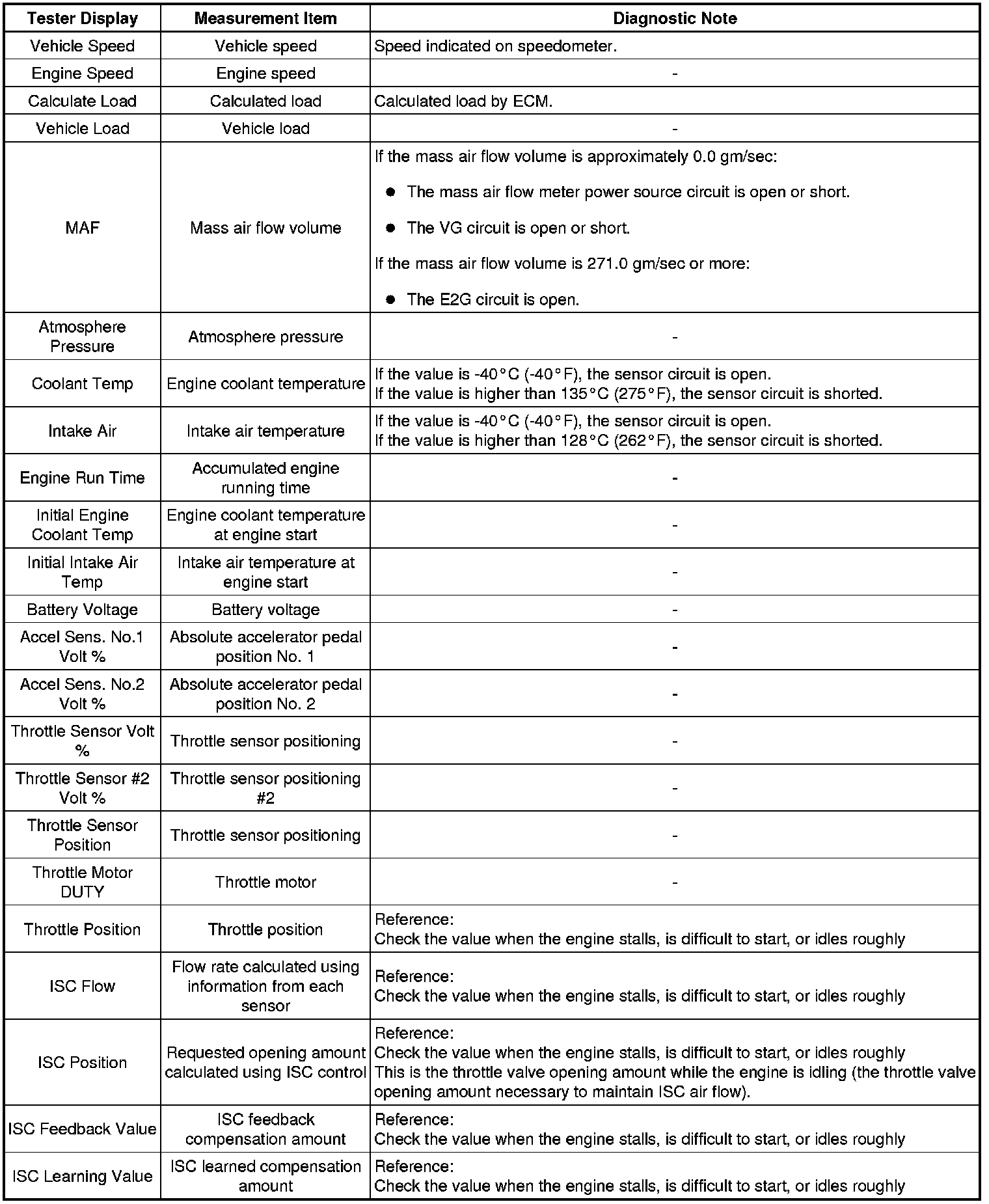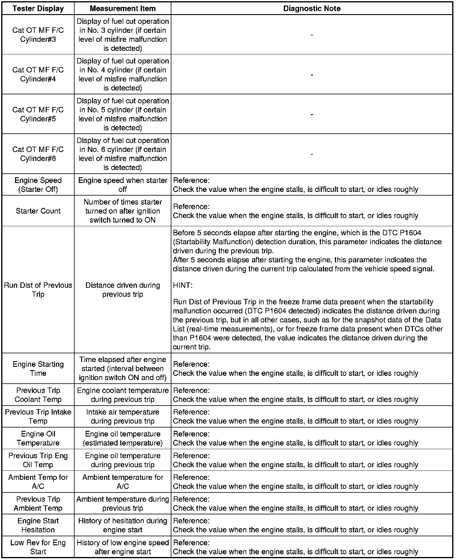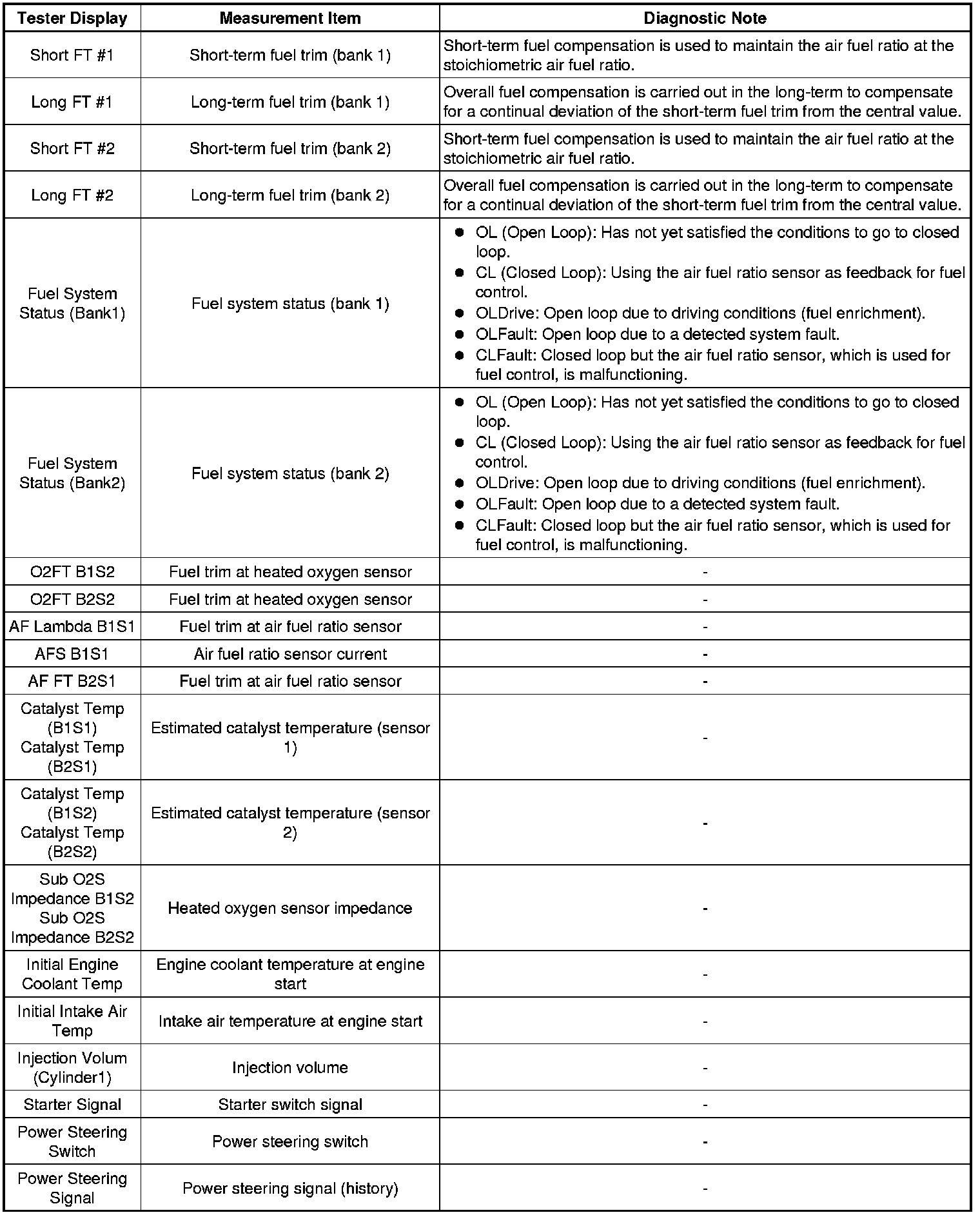 Freeze frame data record the engine conditions (fuel system, calculated load, engine coolant temperature, fuel trim, engine speed, vehicle speed, etc.) when a malfunction is detected. When troubleshooting, it can help determine if the vehicle was running or stopped, the engine was warmed up or not, the air fuel ratio was Lean or Rich, and other data, from the time the malfunction occurred.