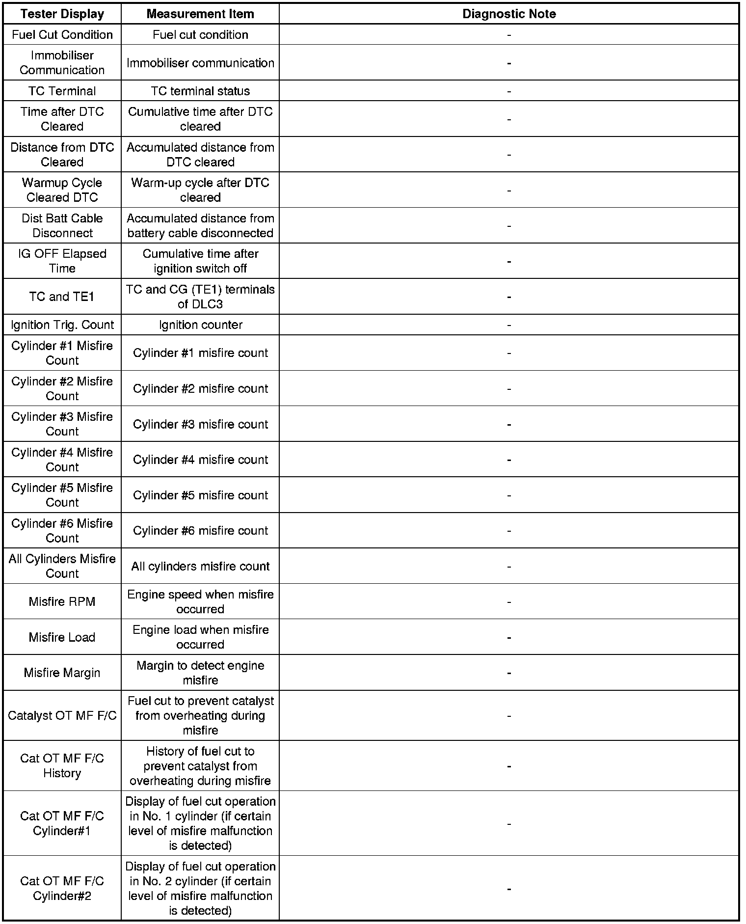 The ECM records engine conditions in the form of freeze frame data every 0.5 seconds. Using the Techstream five separate sets of freeze frame data, including the data values at the time when the DTC was stored, can be checked.