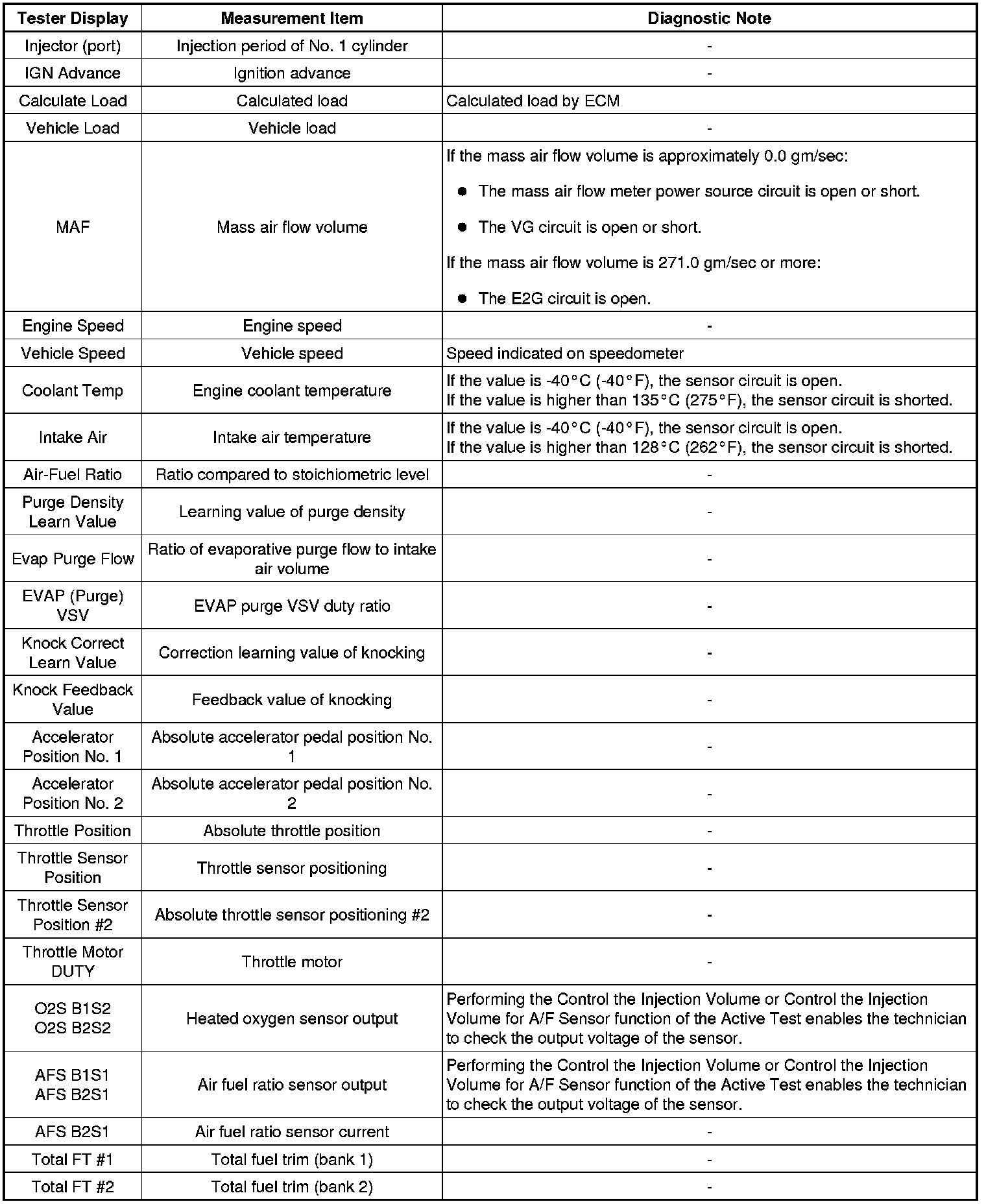 1GR-FE ENGINE CONTROL SYSTEM: SFI SYSTEM: FREEZE FRAME DATA