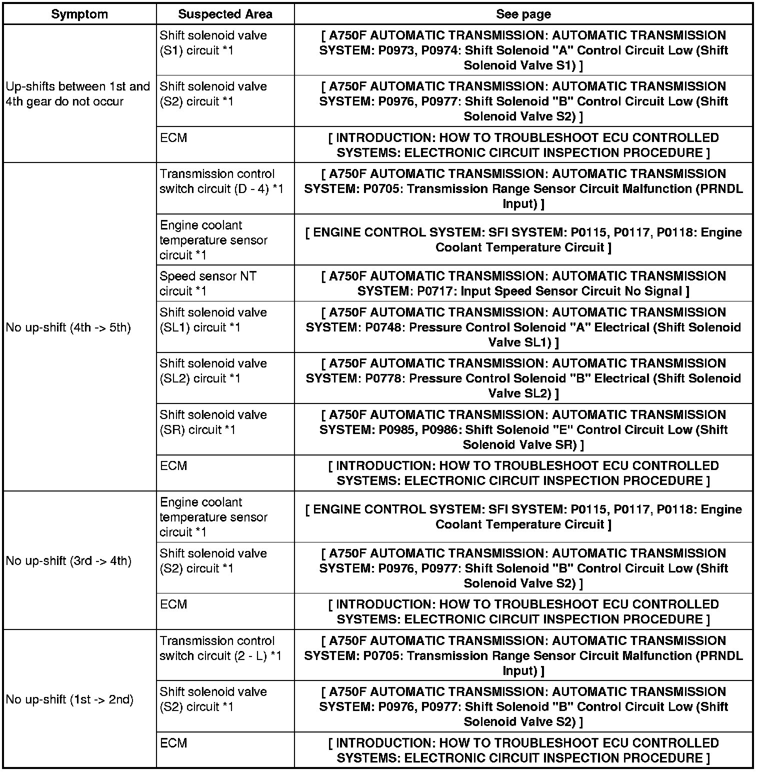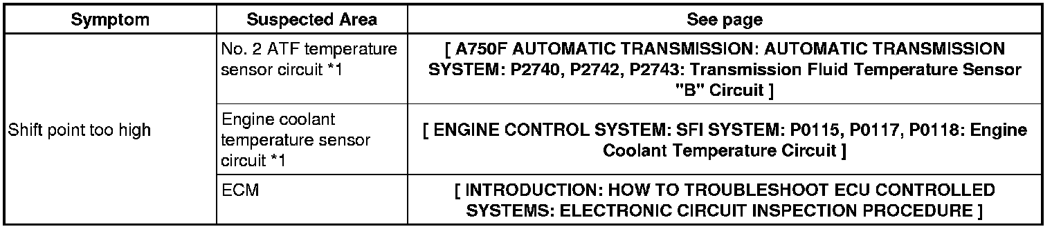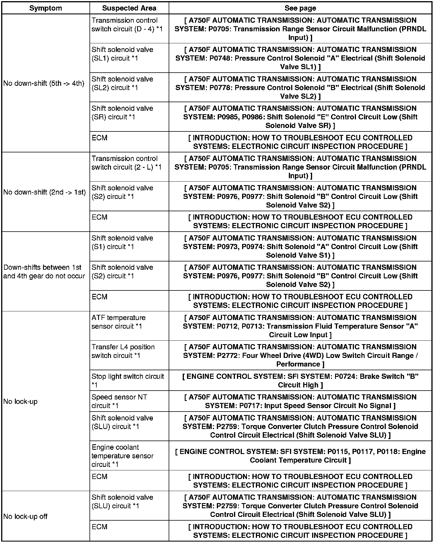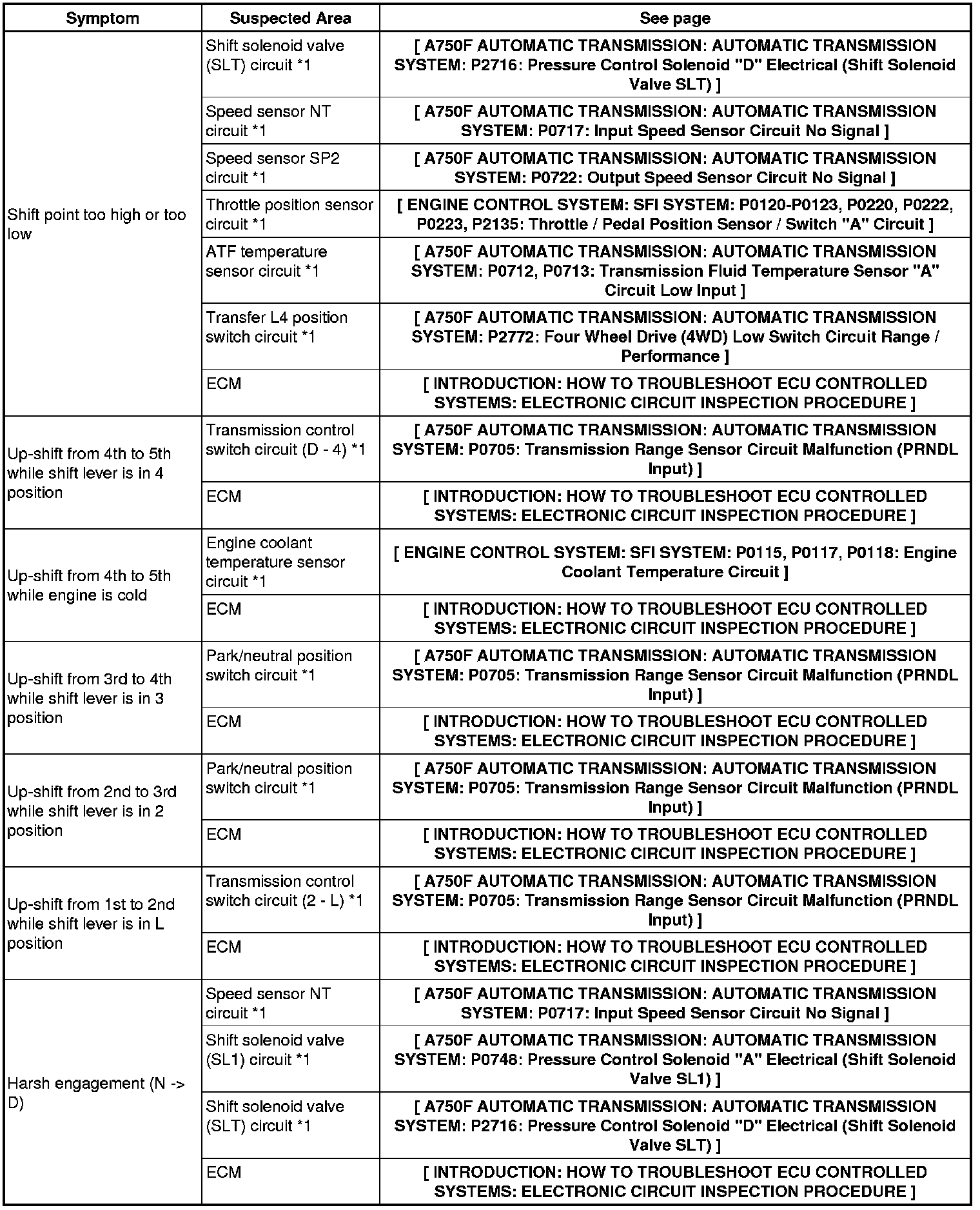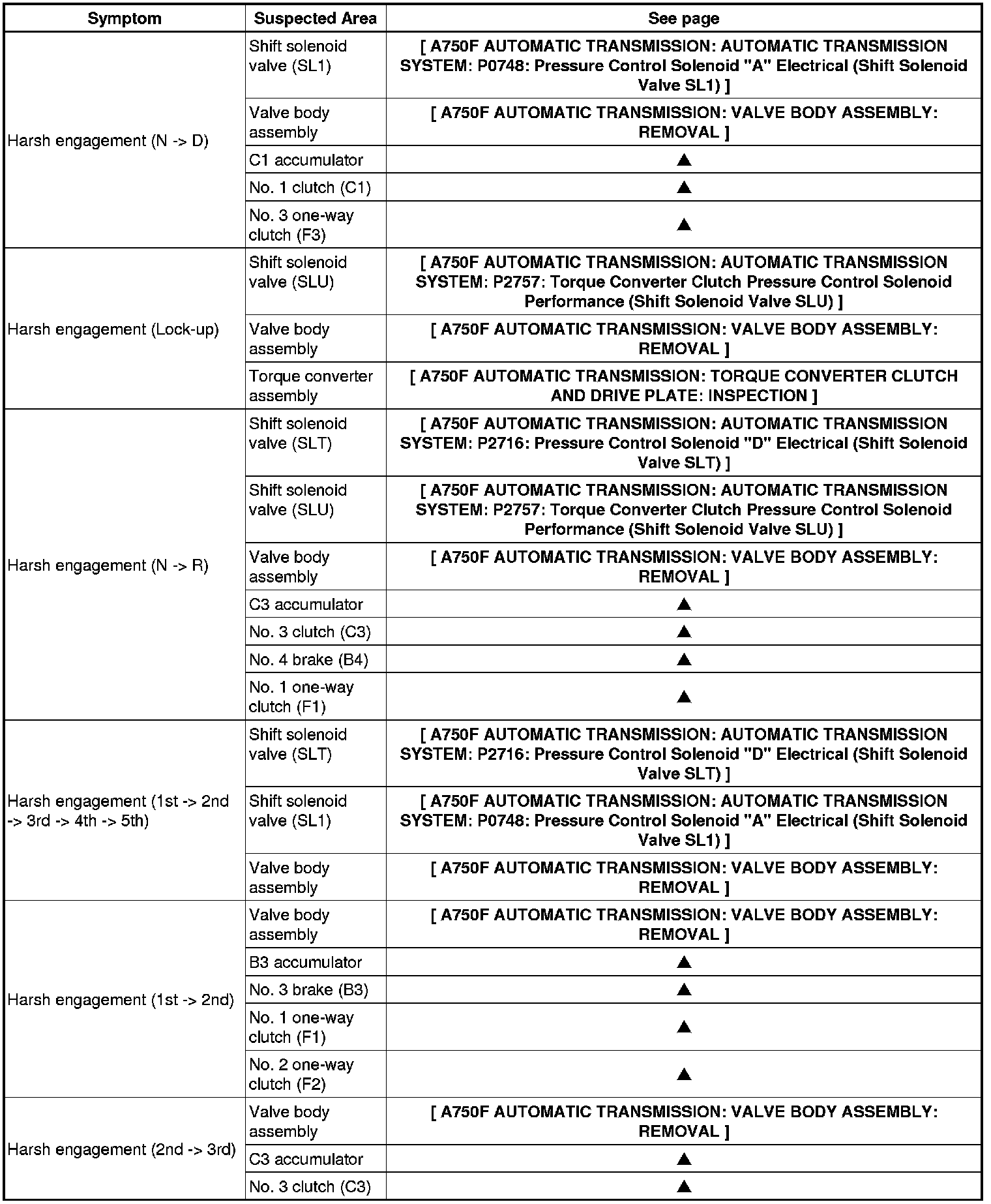 A750F AUTOMATIC TRANSMISSION: AUTOMATIC TRANSMISSION SYSTEM: PROBLEM SYMPTOMS TABLE