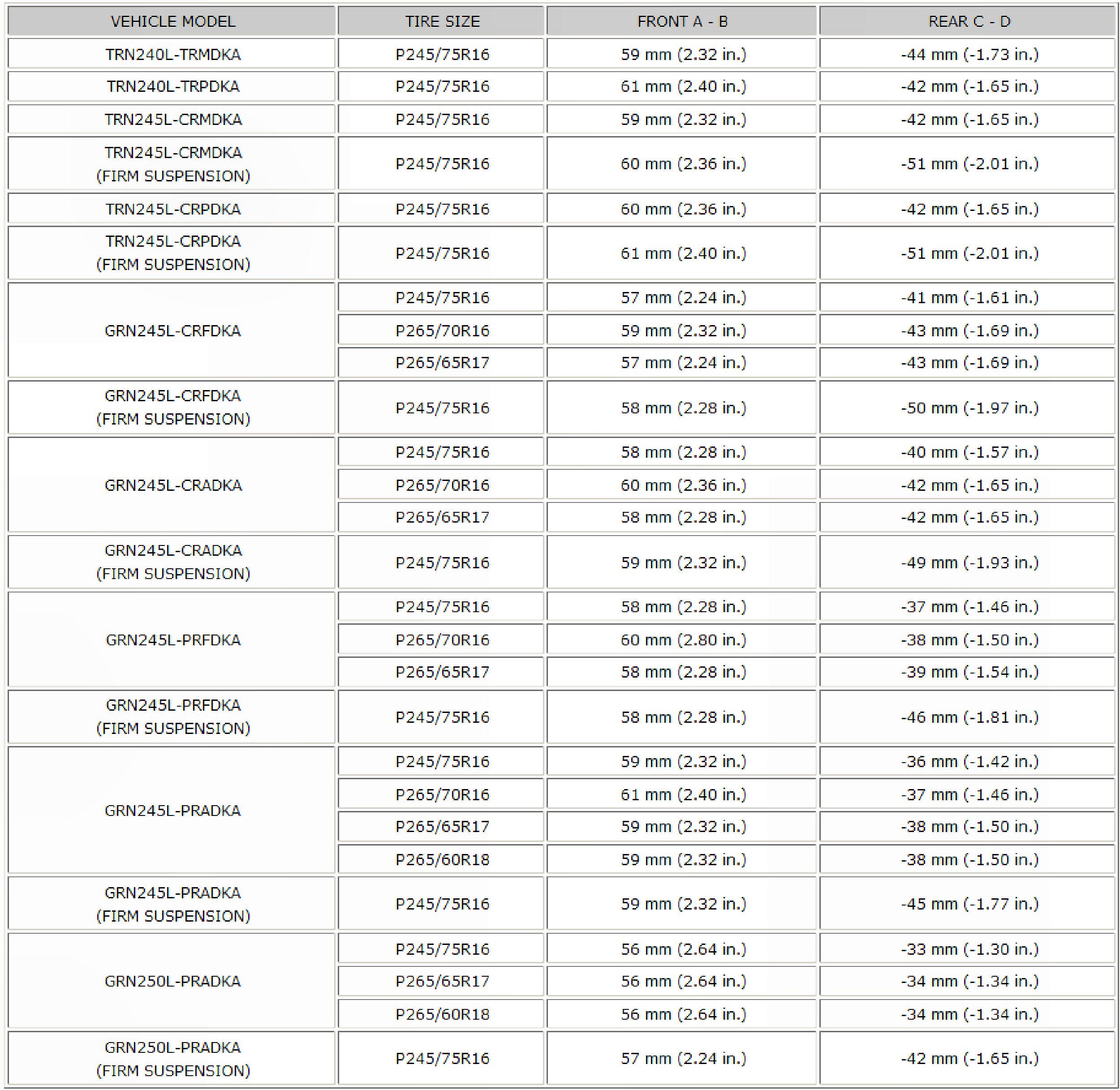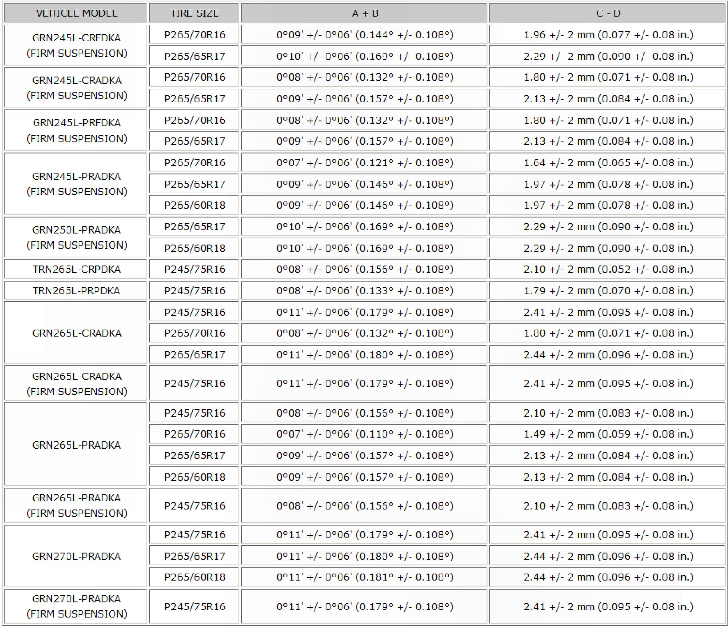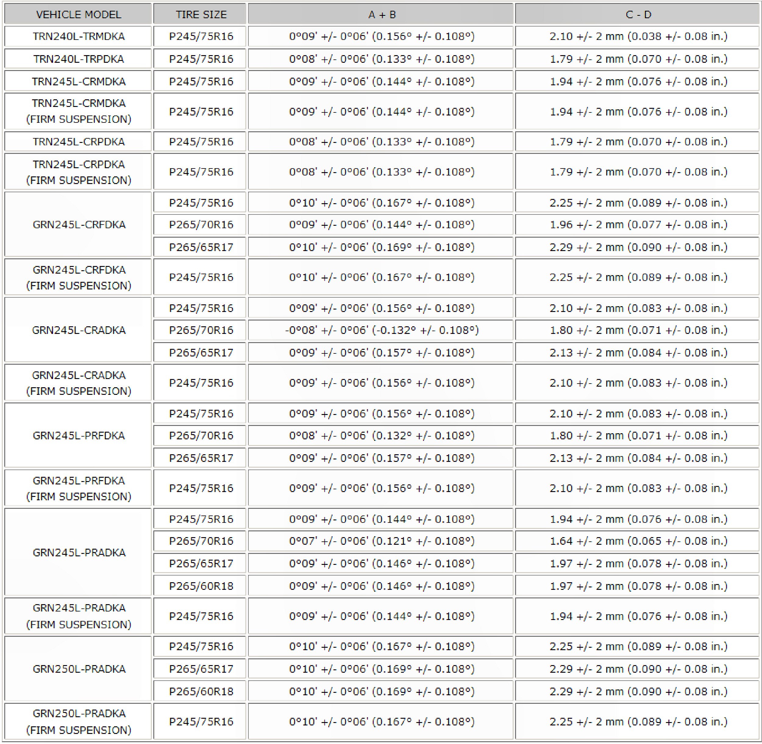 Wheel Alignment SpecificationsVehicle Height (USA):