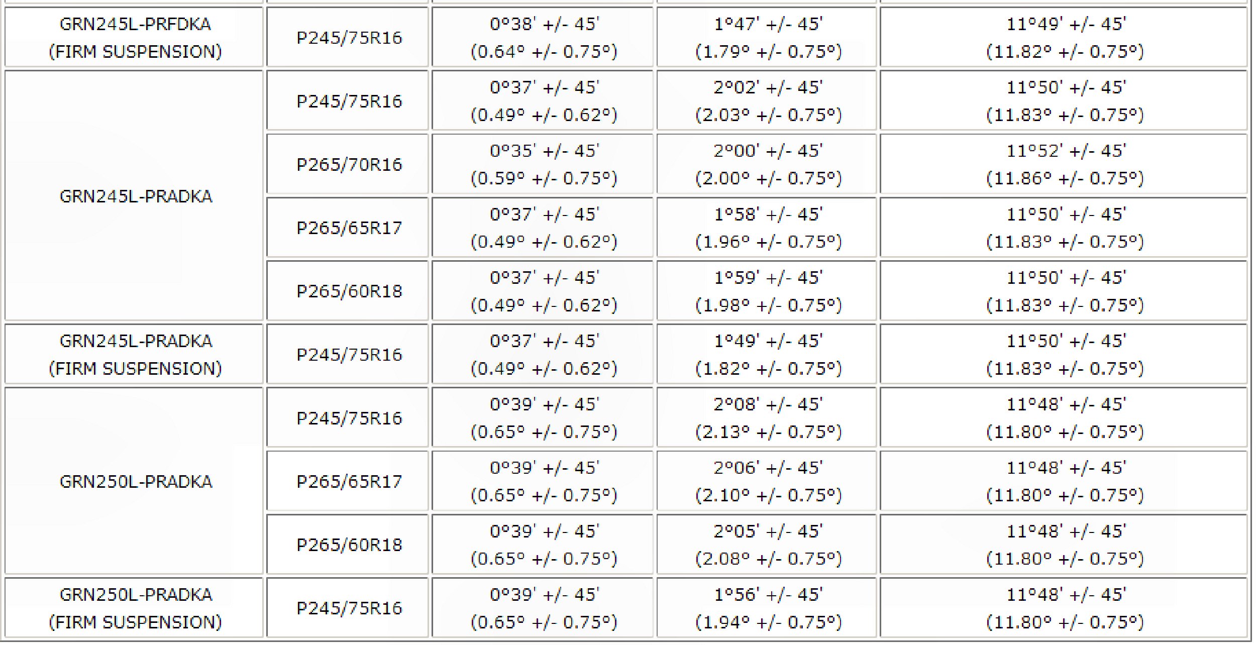 Camber, Caster And Steering Axis Inclination (USA Possession) Cont.: