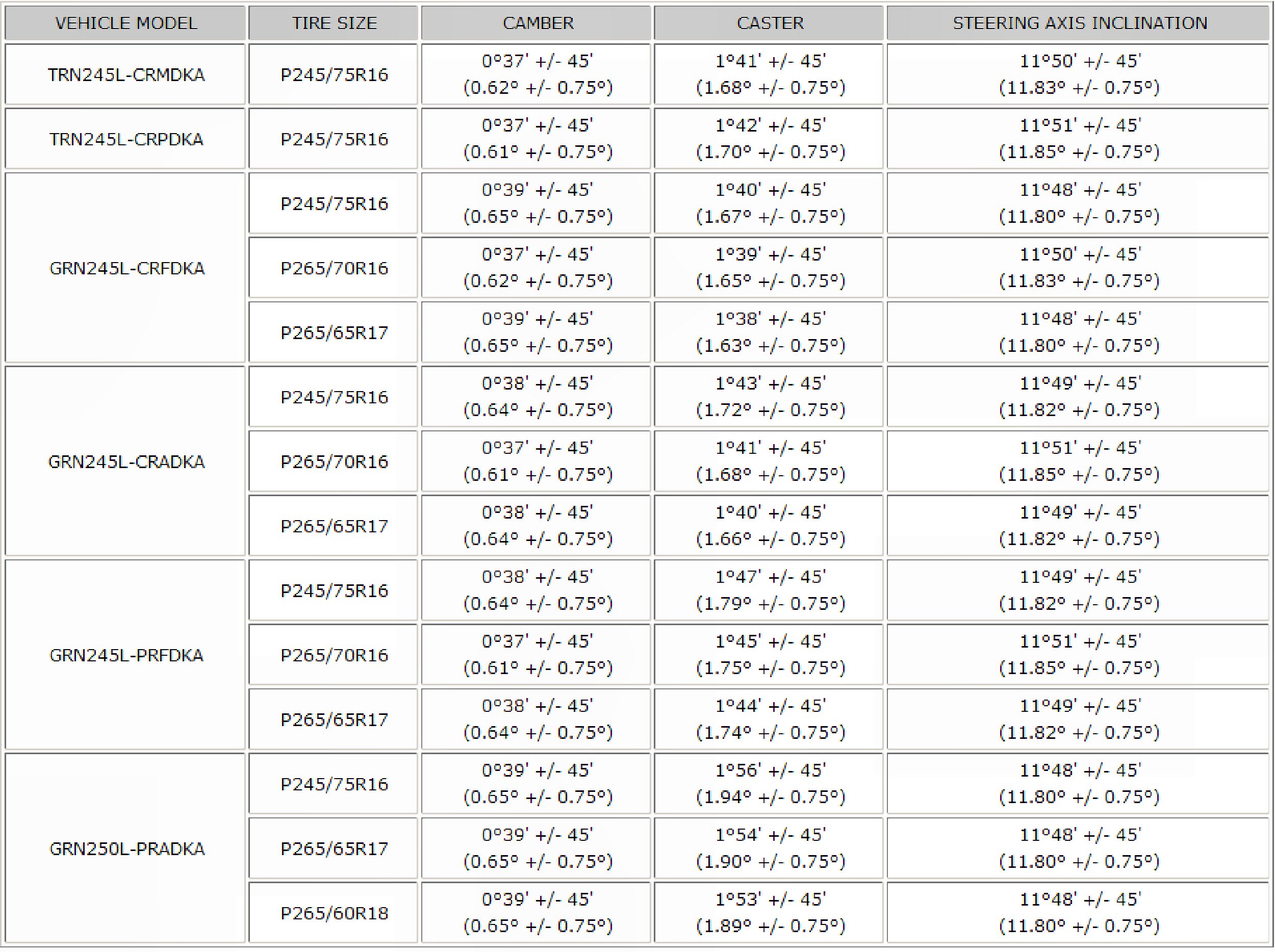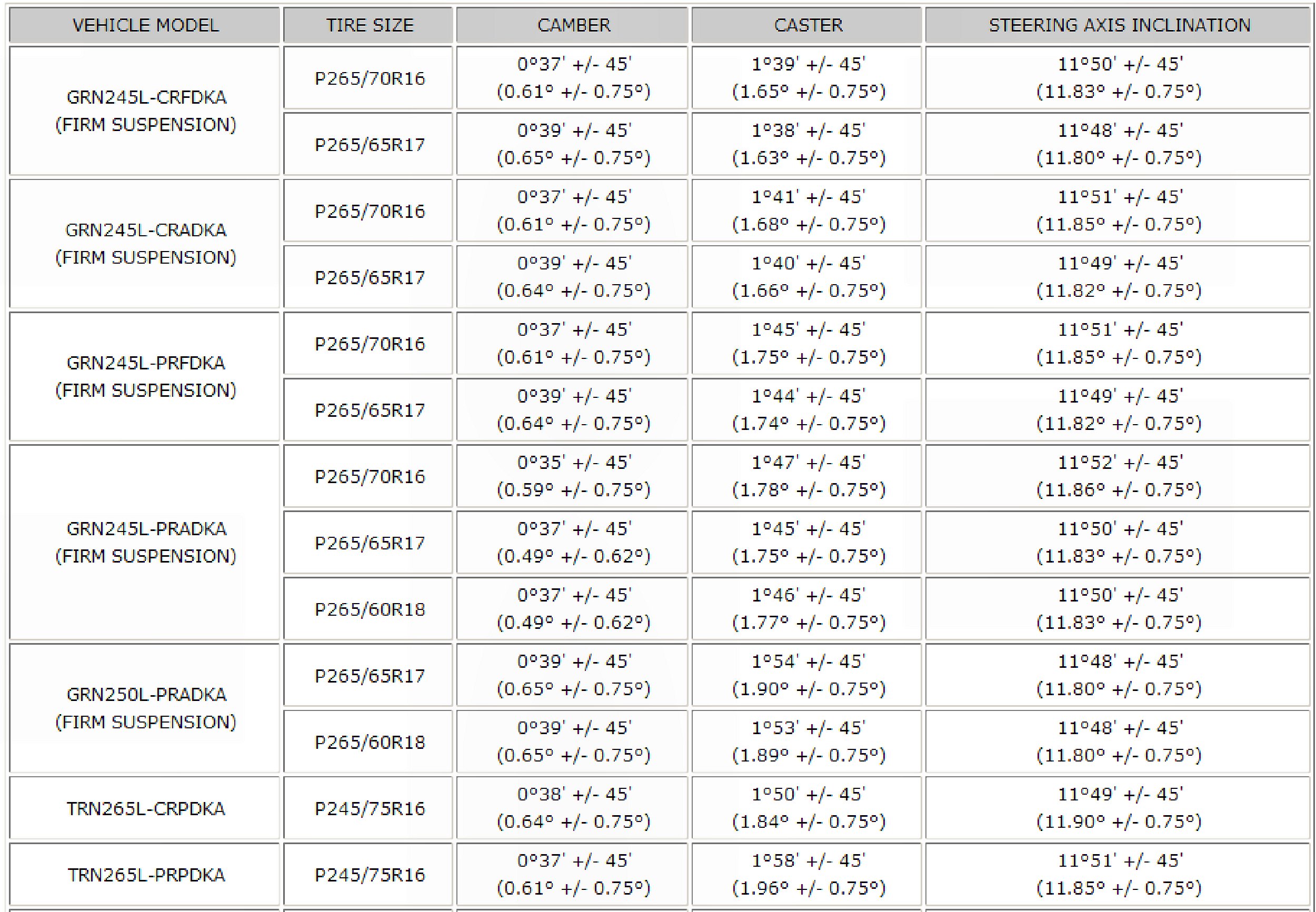 Camber, Caster And Steering Axis Inclination (USA Possession):