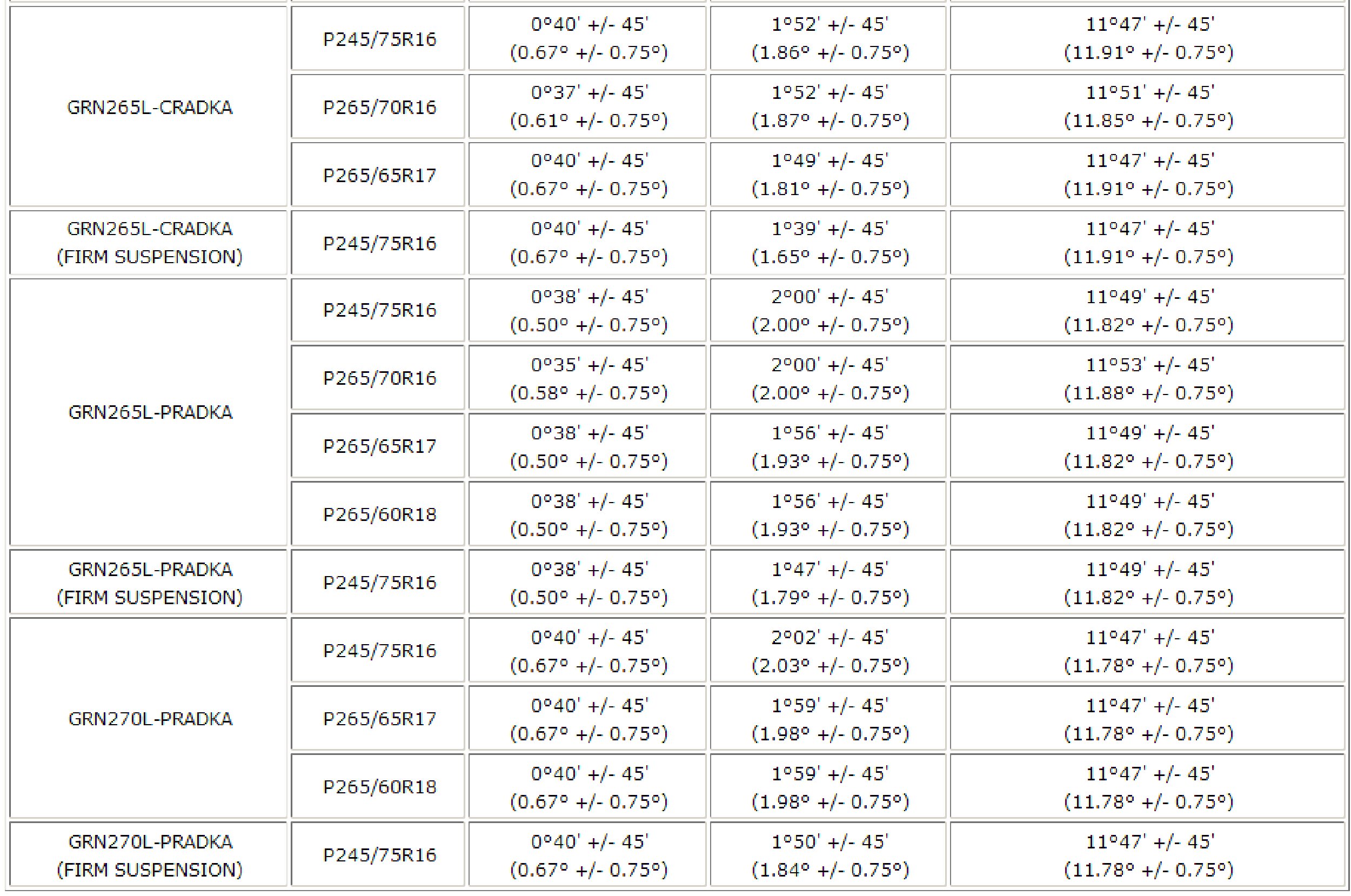 Camber, Caster And Steering Axis Inclination (Mexico /4 Leaf Spring):