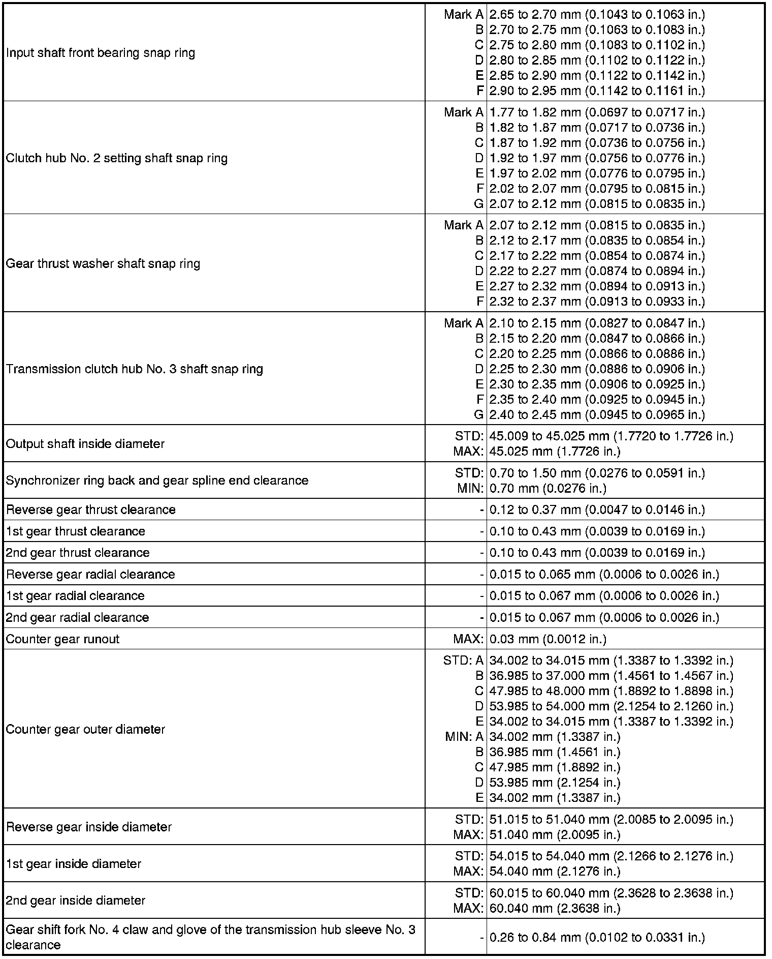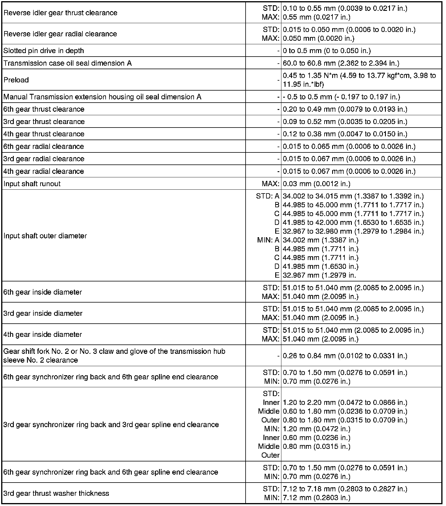 SERVICE SPECIFICATIONS: RA60F MANUAL TRANSMISSION: SERVICE DATA