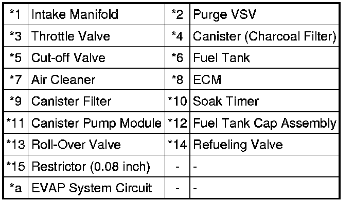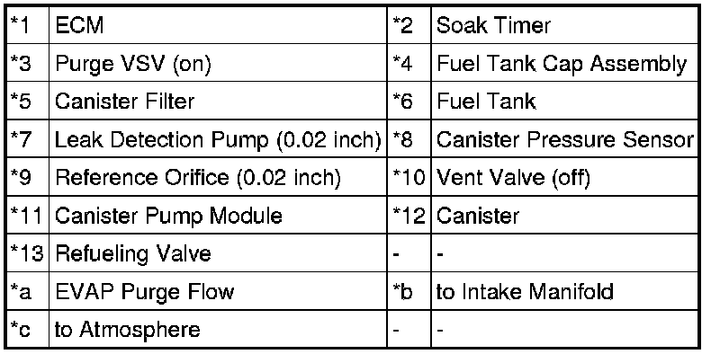 * *2: This result suggests that due to purge line blockage or purge VSV malfunction, the DTC was stored by the purge flow monitor while the engine was running, or that key-off monitor test result were nearly borderline values.