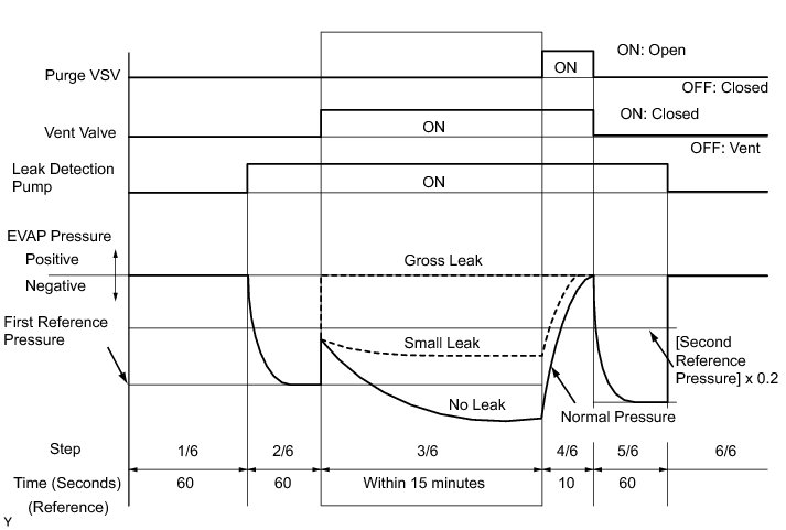 (b) Compare the EVAP pressure in step 3/6 and the second reference pressure (step 5/6).