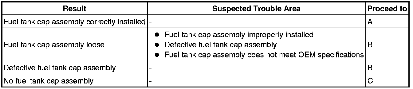 (a) Check that the fuel tank cap assembly is correctly installed and confirm that the fuel tank cap assembly meets OEM specifications.