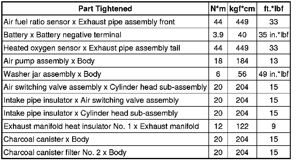 SERVICE SPECIFICATIONS: 2TR-FE EMISSION CONTROL: TORQUE SPECIFICATIONS