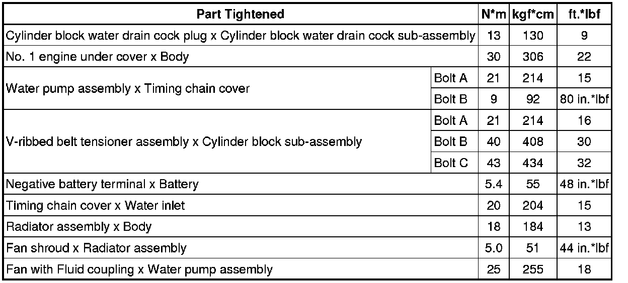 SERVICE SPECIFICATIONS: 2TR-FE COOLING: TORQUE SPECIFICATIONS