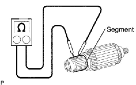 (1) Using an ohmmeter, check the resistance between the segments of the commutator.