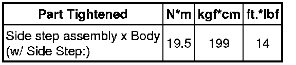 SERVICE SPECIFICATIONS: EXTERIOR: TORQUE SPECIFICATIONS