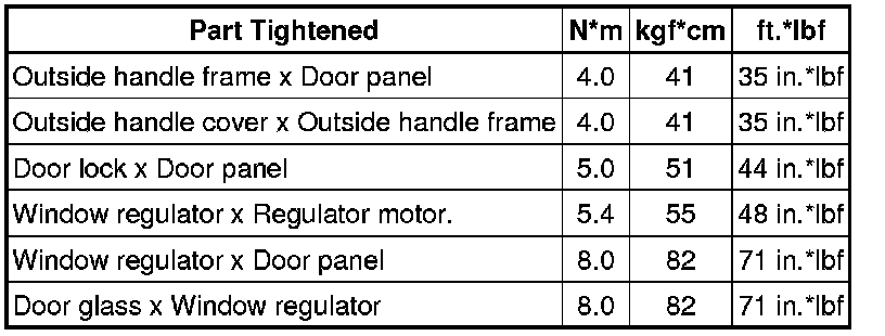 SERVICE SPECIFICATIONS: DOOR LOCK: TORQUE SPECIFICATIONS