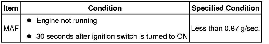 If the result is within the specified range, inspect the mass air flow meter Inspection.