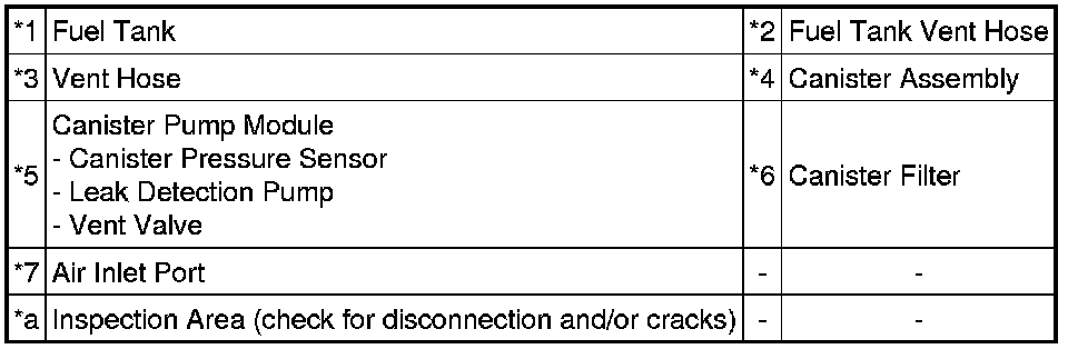 * When replacing the canister, check the canister pump module interior and related pipes for water, fuel and other liquids. If liquids are present, check for disconnections and/or cracks in the following: 1) the pipe from the air inlet port to the canister pump module; 2) the canister filter; and 3) the fuel tank vent hose.