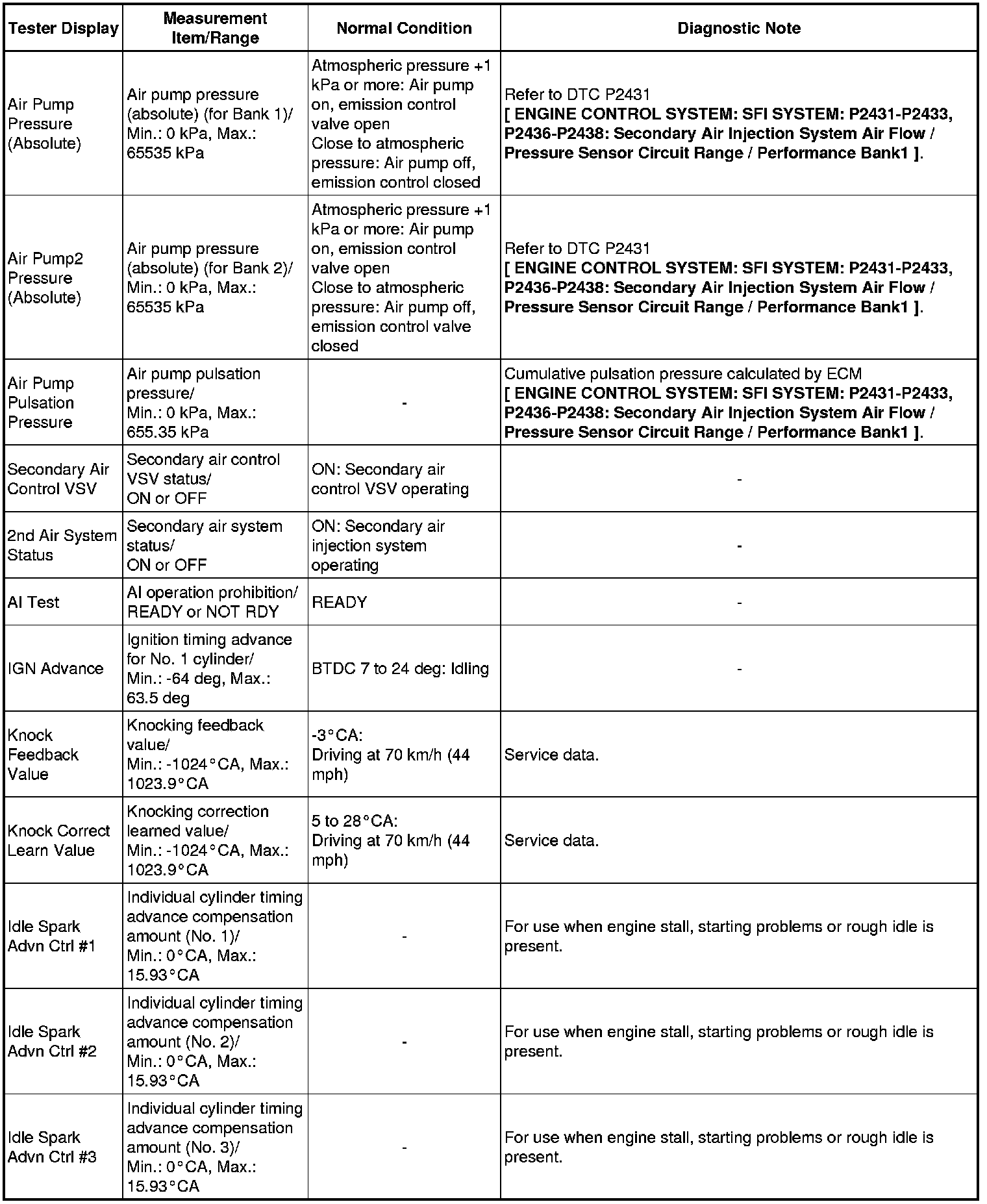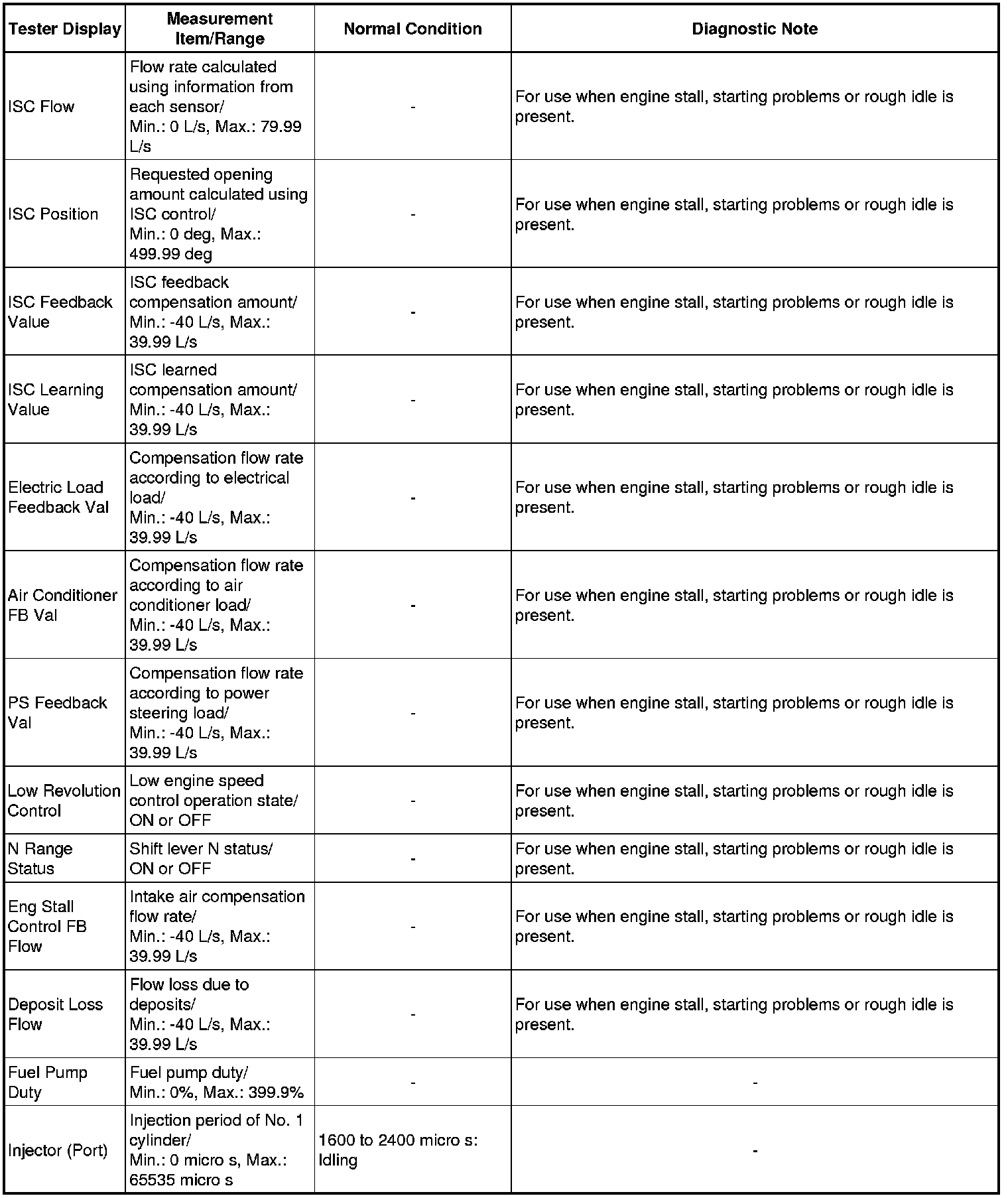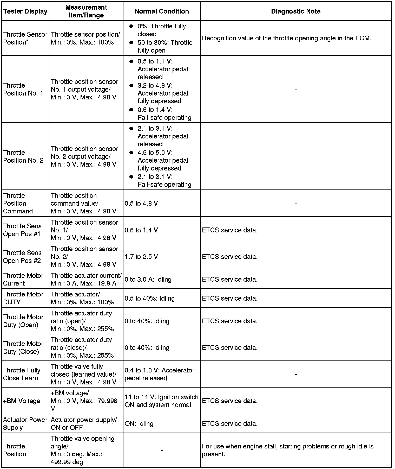 * *: This excludes the throttle valve opening percentage due to Idle Speed Control (ISC).